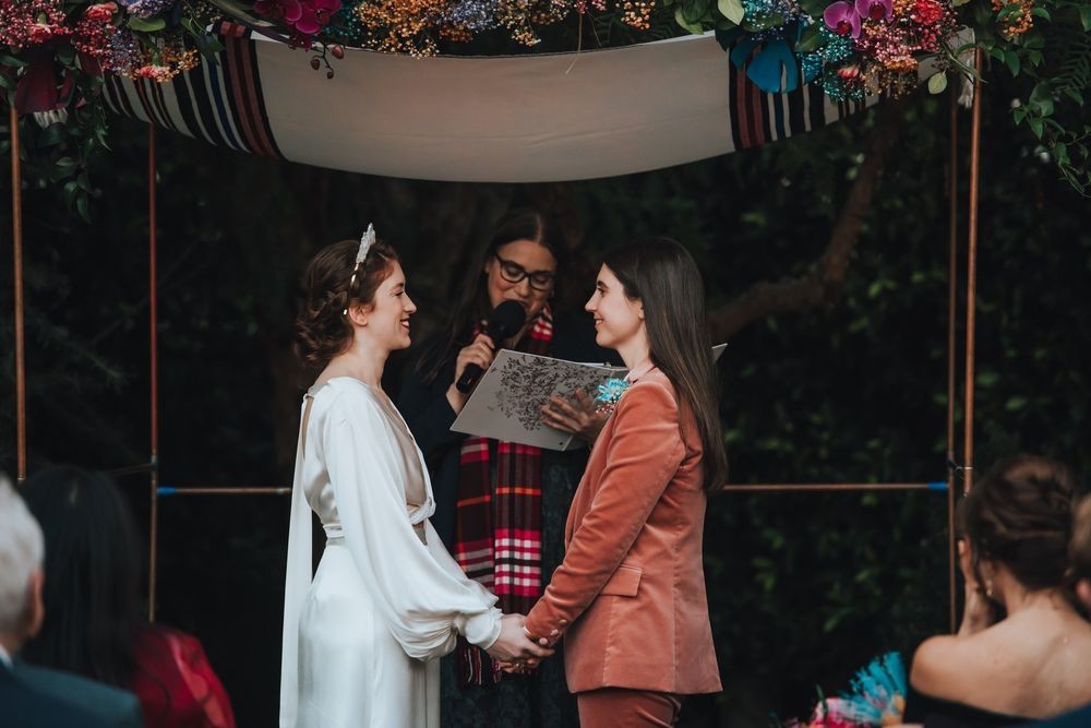 Most of my clients are Latinx and spiritual rather than religious. They come from families who are religious and are somewhat disappointed that their kids are not getting married in the church. I work with couples to create a beautiful ceremony that reflects their views and their love story, while still making their families feel welcome and considered, whether it be through providing a bilingual ceremony (or a ceremony completely in Spanish), or performing a ceremony that feels just as sacred as a traditional ceremony, or both.