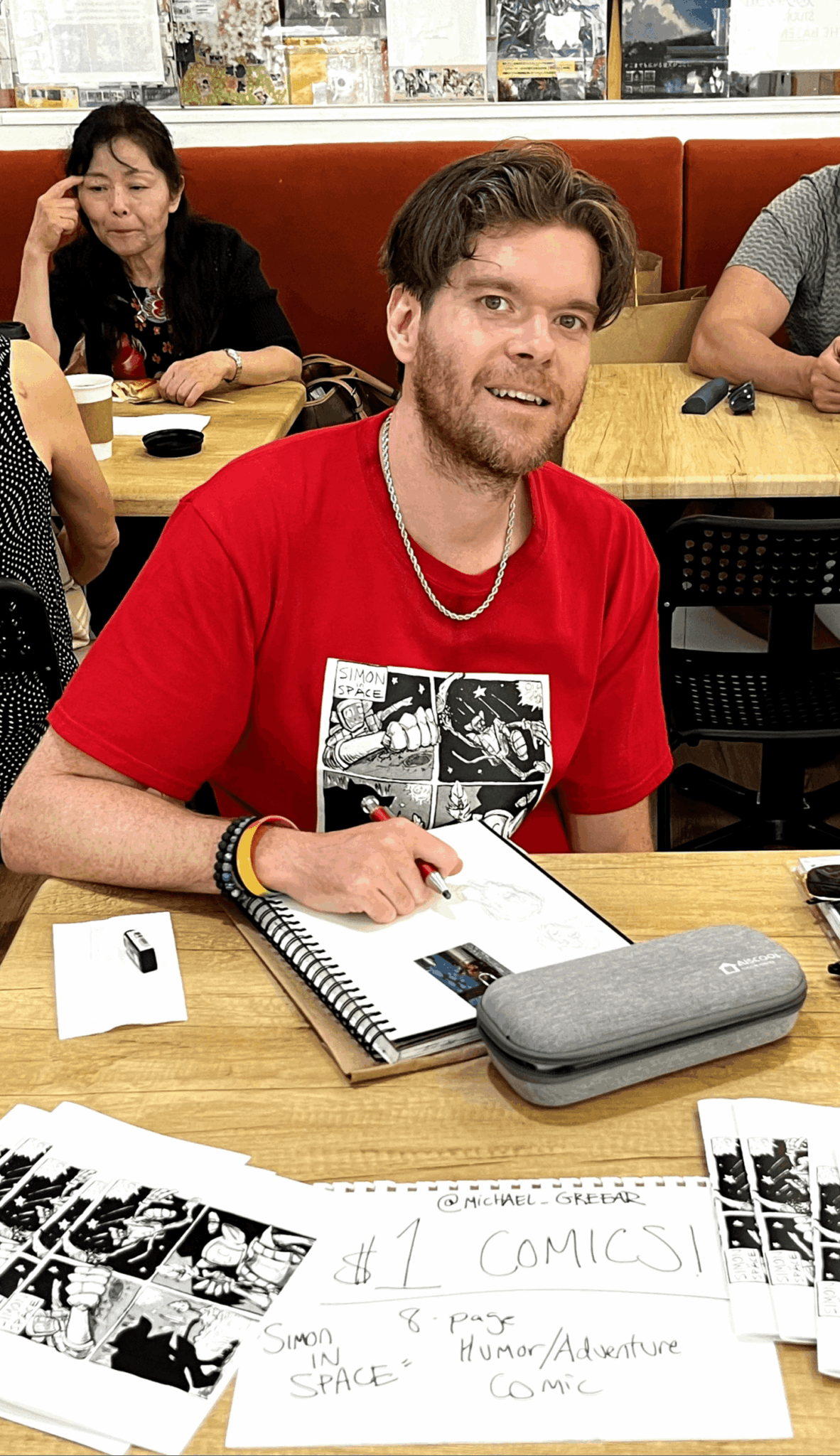 As an independent creator, it falls on me to be both the artist and the business. So, once I’ve created my art, I find places to sell and distribute it online. I also bring it to the public by posting up at cons and shops with copies of my comic, some t-shirts, and various promotional material.