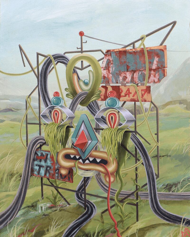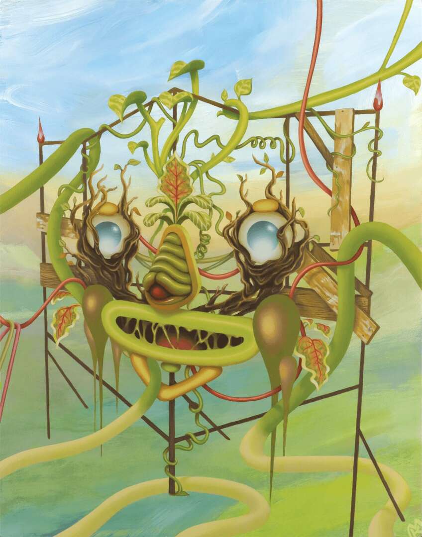 I’m an acrylic painter with a focus on surreal portraiture. My work orbits around our relationship to nature in an increasingly technologically dependent world. The subjects are assembled from a tangled array of wires, tubes, plants, and flowers. They exist in an alternate reality where the natural and unnatural grow in tandem, coalescing into something altogether greater than the sum of their many parts.