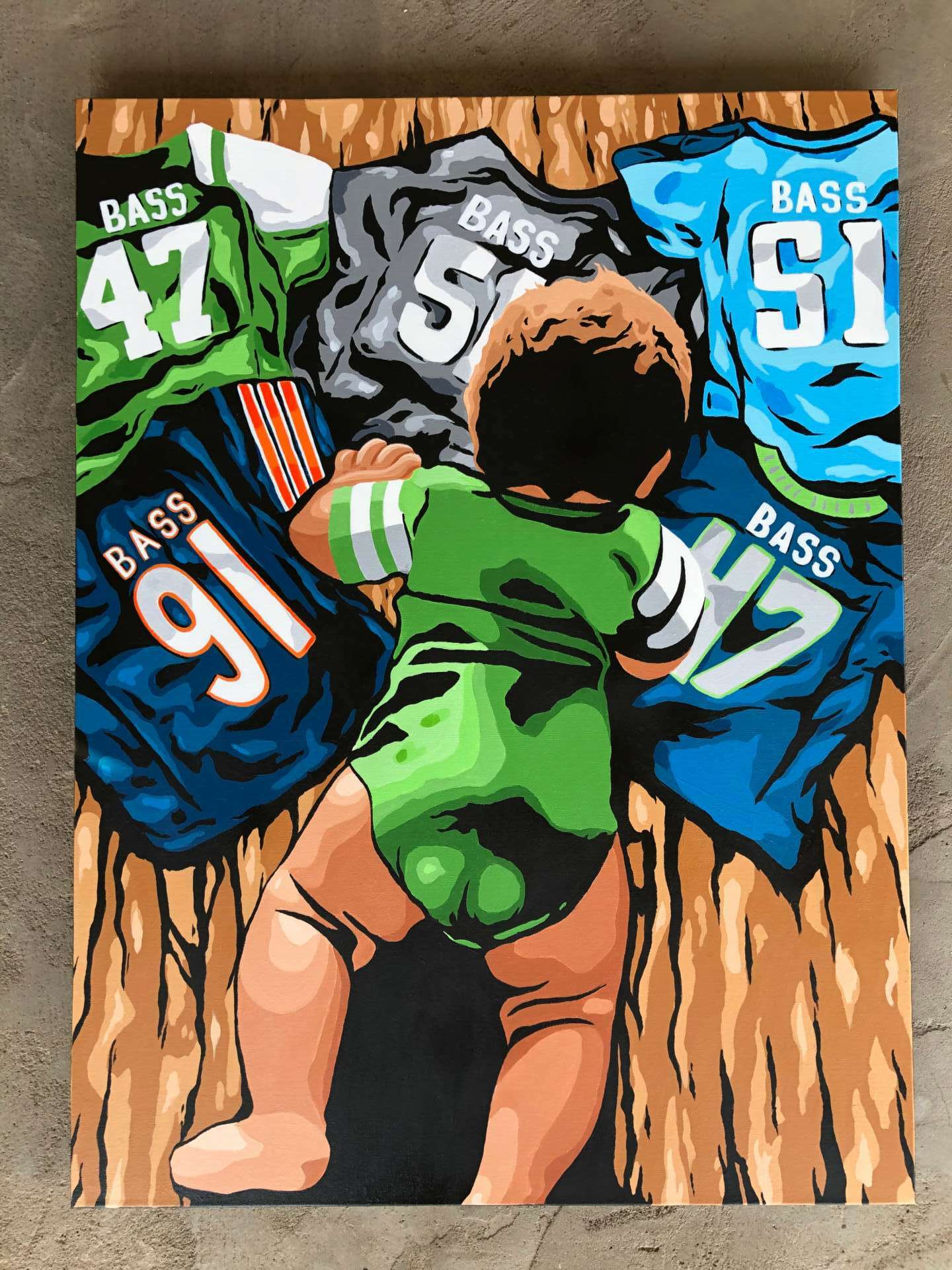 If I could go back in time I wish I would have continued to paint from when I was a teenager. My love for art grew in the early 90’s as a Street Artist. Being able to work with so many different local artists was such a rewarding time. When I was 15 I became a father and realized I needed to make some money. Being a Barber for 10+ years allowed me the financial security to start again. I started drawing a lot more and eventually that led to me painting and doing it full time. I don’t wish I started sooner nor later but continued from when I was a younger kid instead of having the decade long drought.