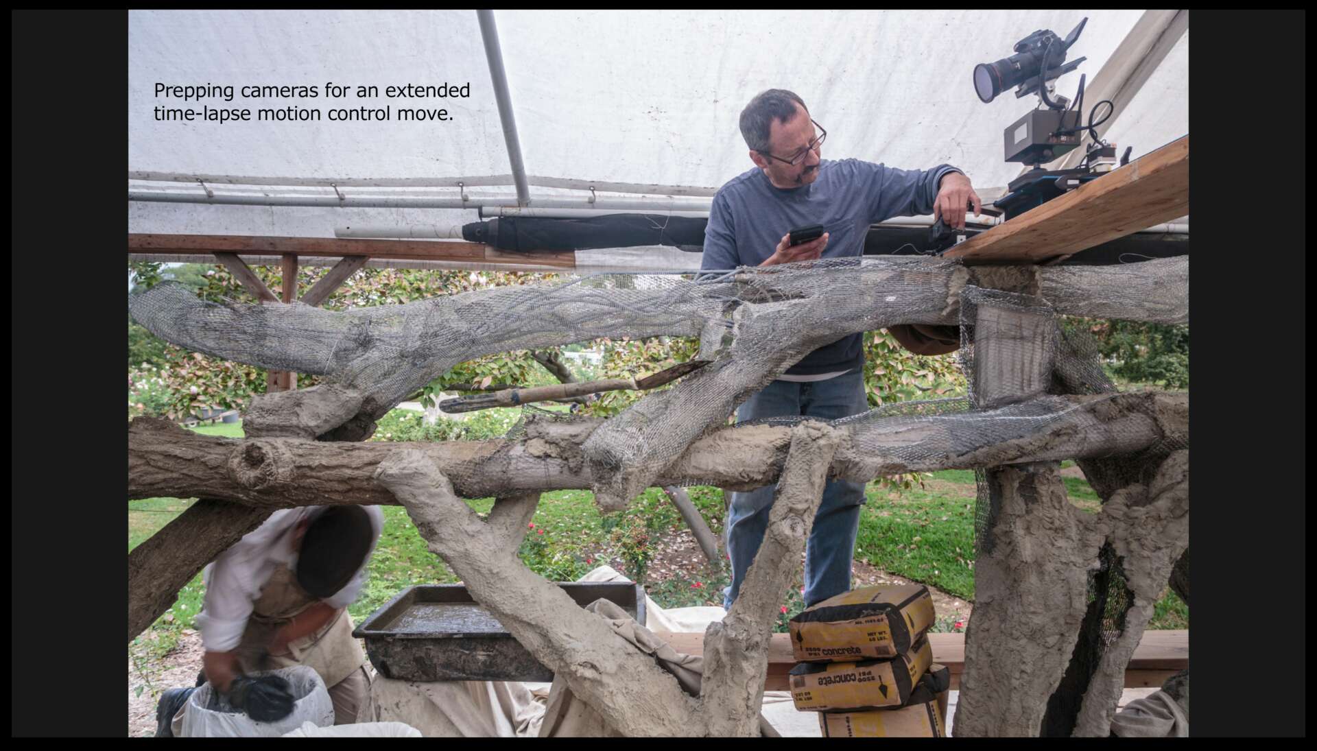 From 2011-2018 my business was one of the top providers of time-lapse construction films for national and international construction companies. Several techniques that are common practice today were developed by me and a few others between 2011 and 2013. In 2017 after 6 years and 14 time-lapse films for the Huntington Library and Botanical Gardens, in San Marino, CA, the organization commissioned me to produce a time-lapse and live-action video portraying artist Terence Egan, a sculptor commissioned to restore 100 decaying Faux bois trees in the Huntington’s famous Rose Garden. Titled “Faux Bois at the Huntington”, it’s certainly one of the highlights of my career. The film can be found on my Vimeo channel. Search for Michael e. Stern.