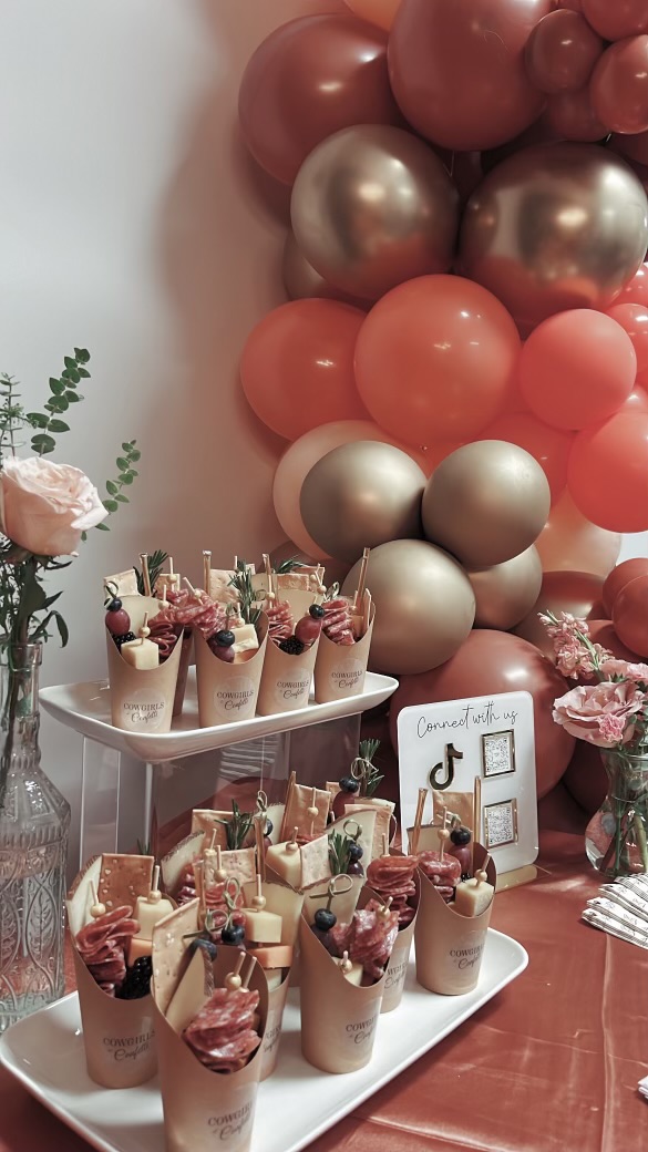 We specialize in bachelorettes, birthdays, and girls trips. We offer three decor packages which vary on party size and budget. Packages include balloon garlands, party decor, gift bags, custom apparel, and stock the fridge service. A la carte options are also offered including mimosa bars, charcuterie boards, and bridesmaid boxes. We offer food packages including brunch bars, catered dinners, and dessert boards. Our goal is to take away the stress and hassle of coordinating all the details of a party so our client can simply sit back, relax, and enjoy. We’re most proud of the extensive options we are able to offer while still paying attention to the small details.