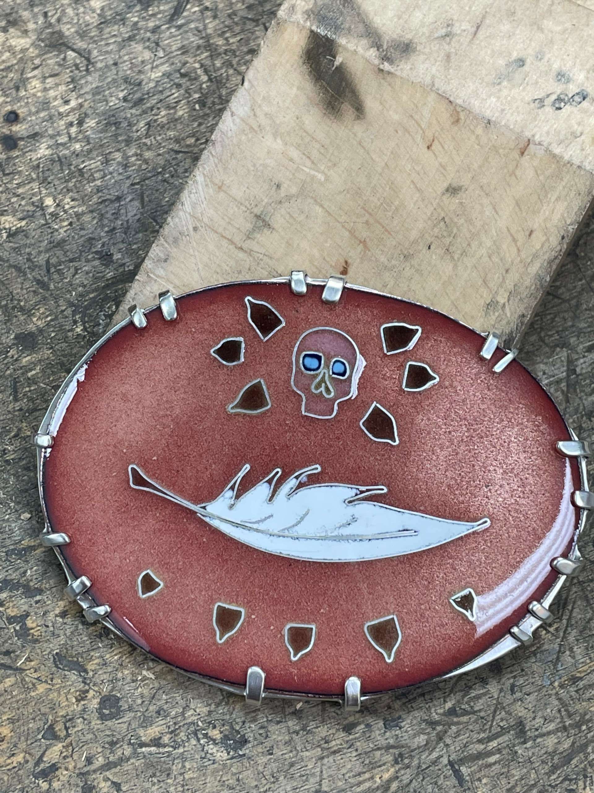 I am always wanting to learn and create new things so I began enameling and now I am more interested in making art jewelry and unique one of a kind pieces. I combine my wax carving and casting with the enamel pieces.