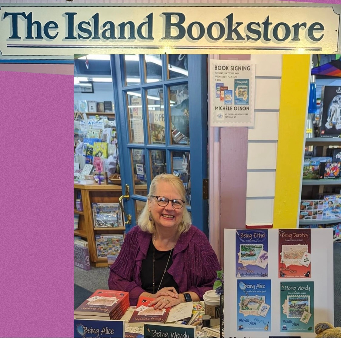 When you put out a novel, you are putting a book baby out into the world. You have many questions. Will anyone like the story? Will it resonate? Will the mystery have the right balance of intrigue? I recently when to the place where my stories take place – Mackinac Island – to sign books at the Island Bookstore. What a joy to meet readers! To hear that people enjoyed the stories, can’t wait to read the next one, and to hear their favorite characters and parts of the books is extremely rewarding and validating to an author. It’s the encouragement to keep writing and creating this world that others now want to be a part of. I love to hear from readers.