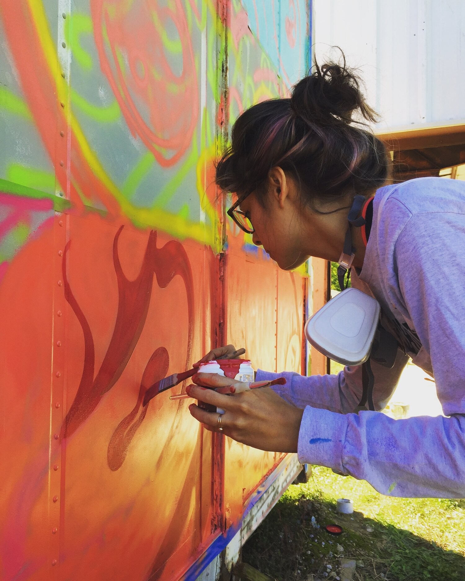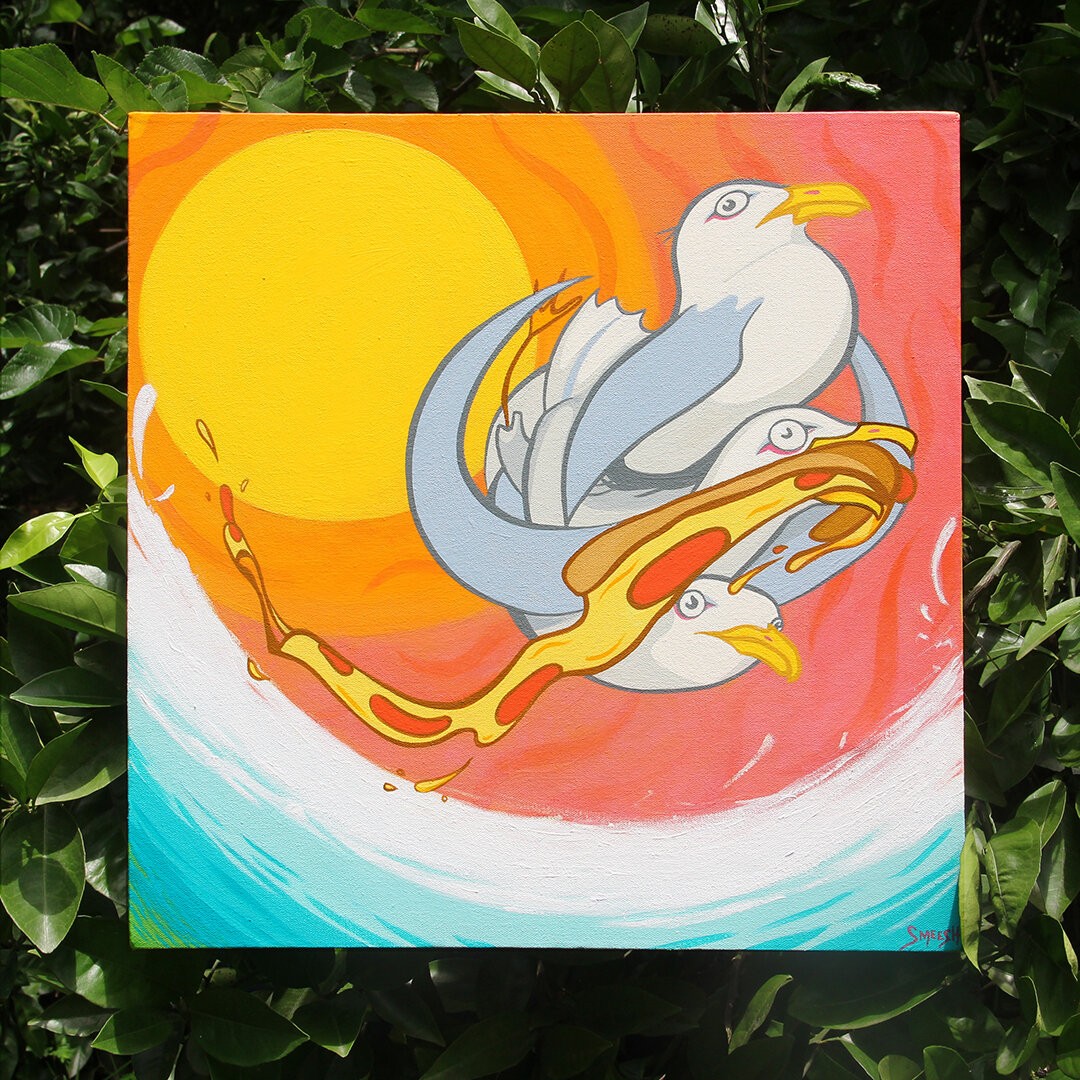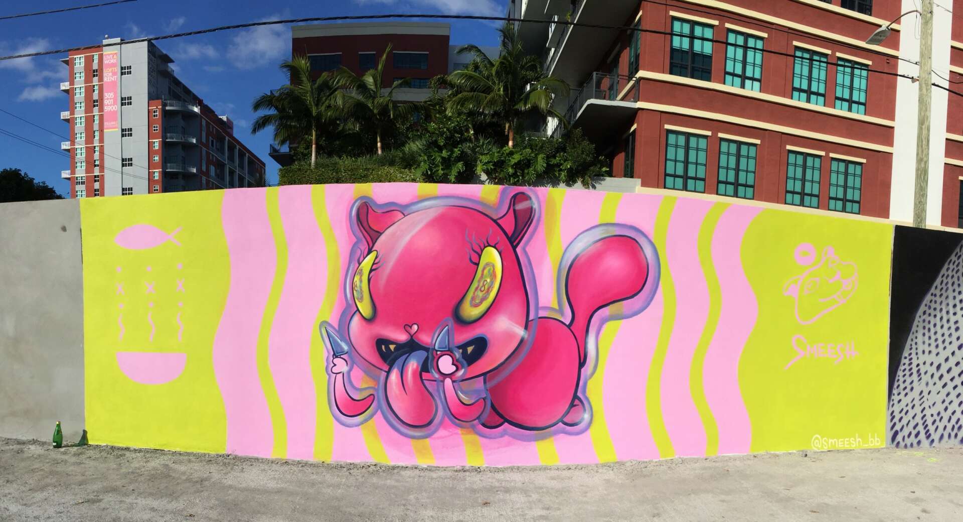 My name is smeesh. I am an artist living in Atlanta, GA. I specialize in mural work. I got my start painting murals in Tallahassee, FL. My art is a mix of cheery and vicious. I paint a lot of characters in a graphic style and with bright and bold colors. I like to create spaces that are fun and exciting. That’s probably a big reason I love painting murals so much. I am also currently showcasing more art in a gallery setting, in Atlanta.