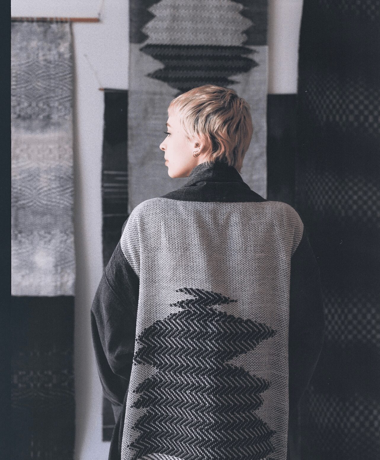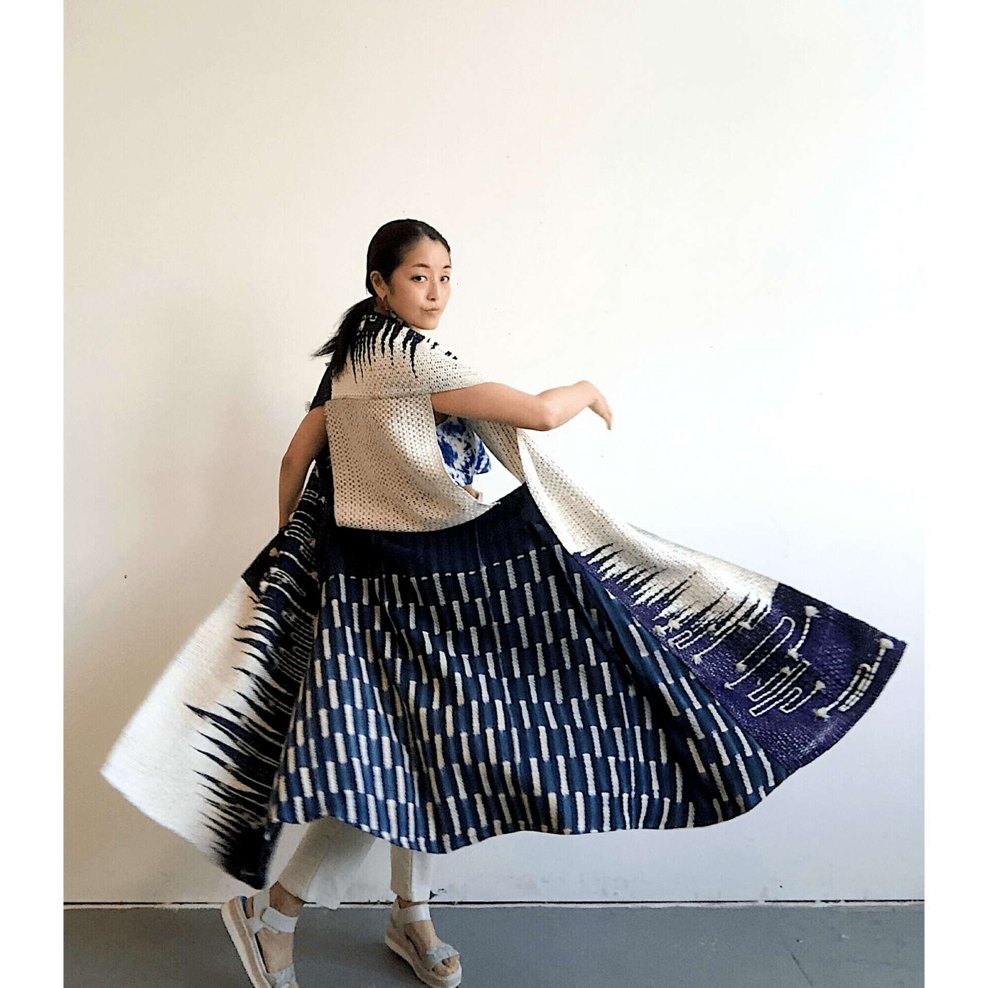 At my brand, I provide clothing products, all made with sustainable materials and produced by myself. My designs are inspired by zen and abstract art, resulting in pieces that are both stylish and environmentally conscious. I make items through weaving because I am a weaver first. I believe in transparency and ensure that our clients know the story behind each garment they purchase.