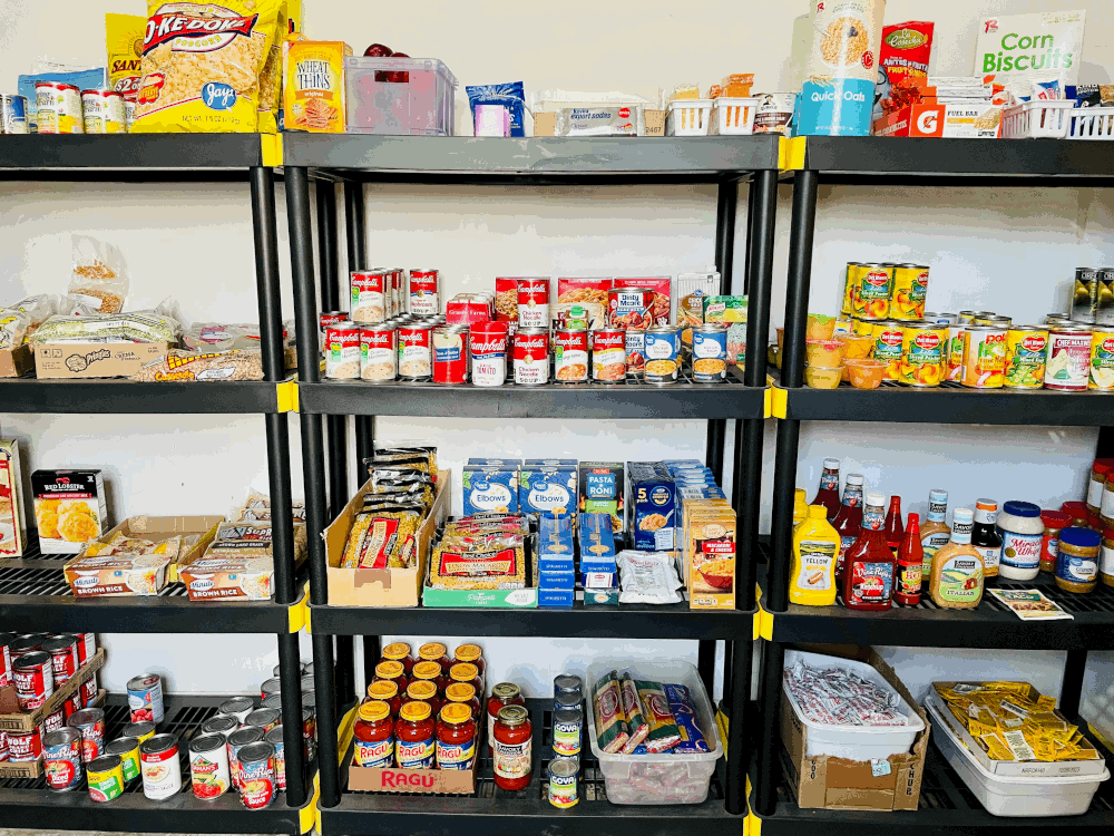 We also have a small food pantry in our store, which we call our Little Free Grocery, stocked with items donated by the community. We carry food, hygiene items, baby food and formula, diapers (for both babies and adults), and even socks, bras, and underwear. Those things are always available to anyone for free. Our pantry serves not only the homeless, but anyone who is struggling.