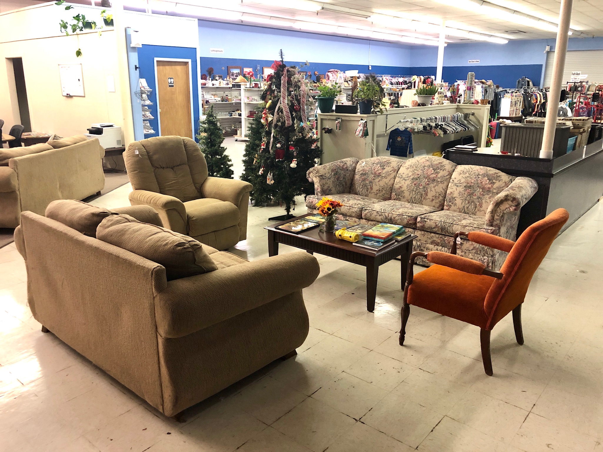 Along with clothing, we can provide bedding and blankets, pots and pans, health and hygiene items (including wheelchairs, walkers, crutches, etc), and sometimes even furniture and larger appliances. As I said, we price everything to sell, but no one in need is ever turned away.