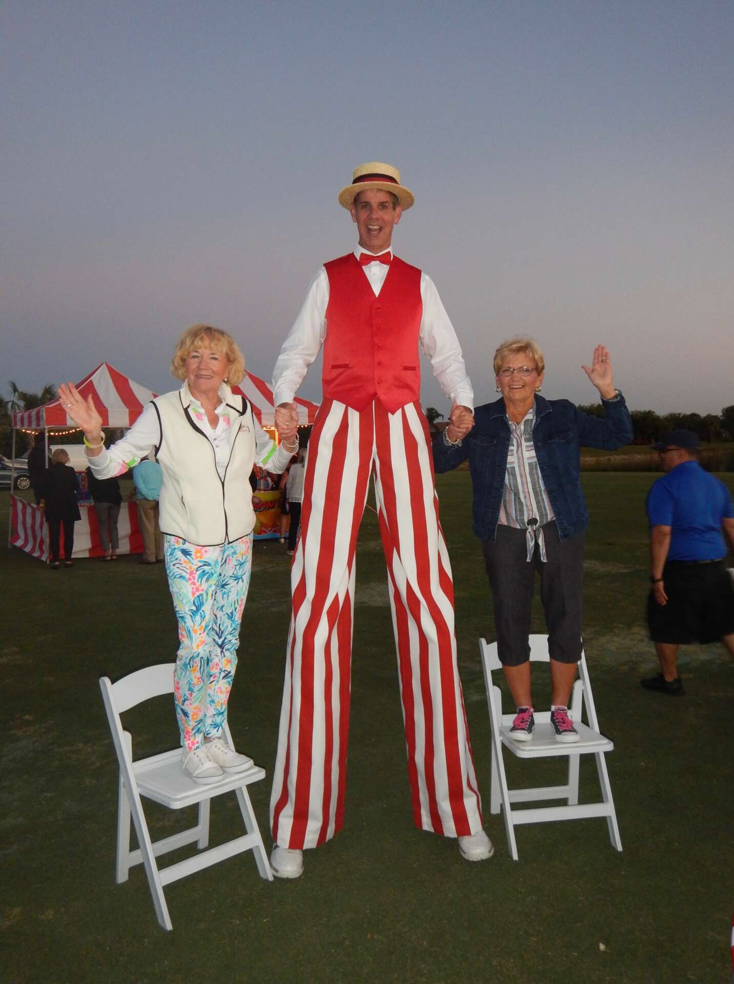I’ve been earning a full-time living as an entertainer ever since the end of 1988 when I joined the Ringling Bros. and Barnum & Bailey Circus as a circus clown. After spending 7 years touring with the circus, I moved to Las Vegas for a year and performed as a clown at the Circus Circus Hotel. I then moved to Orlando and started stilt walking at the theme parks and local events. In 2002, I was hired at the newly opened Gaylord Palms Resort Hotel in Kissimmee as an in-house stilt walker, & worked there full time for 8 years. Then in 2010, I decided to become my own boss and became a full time freelance stilt walker, and that is what I am still doing today.