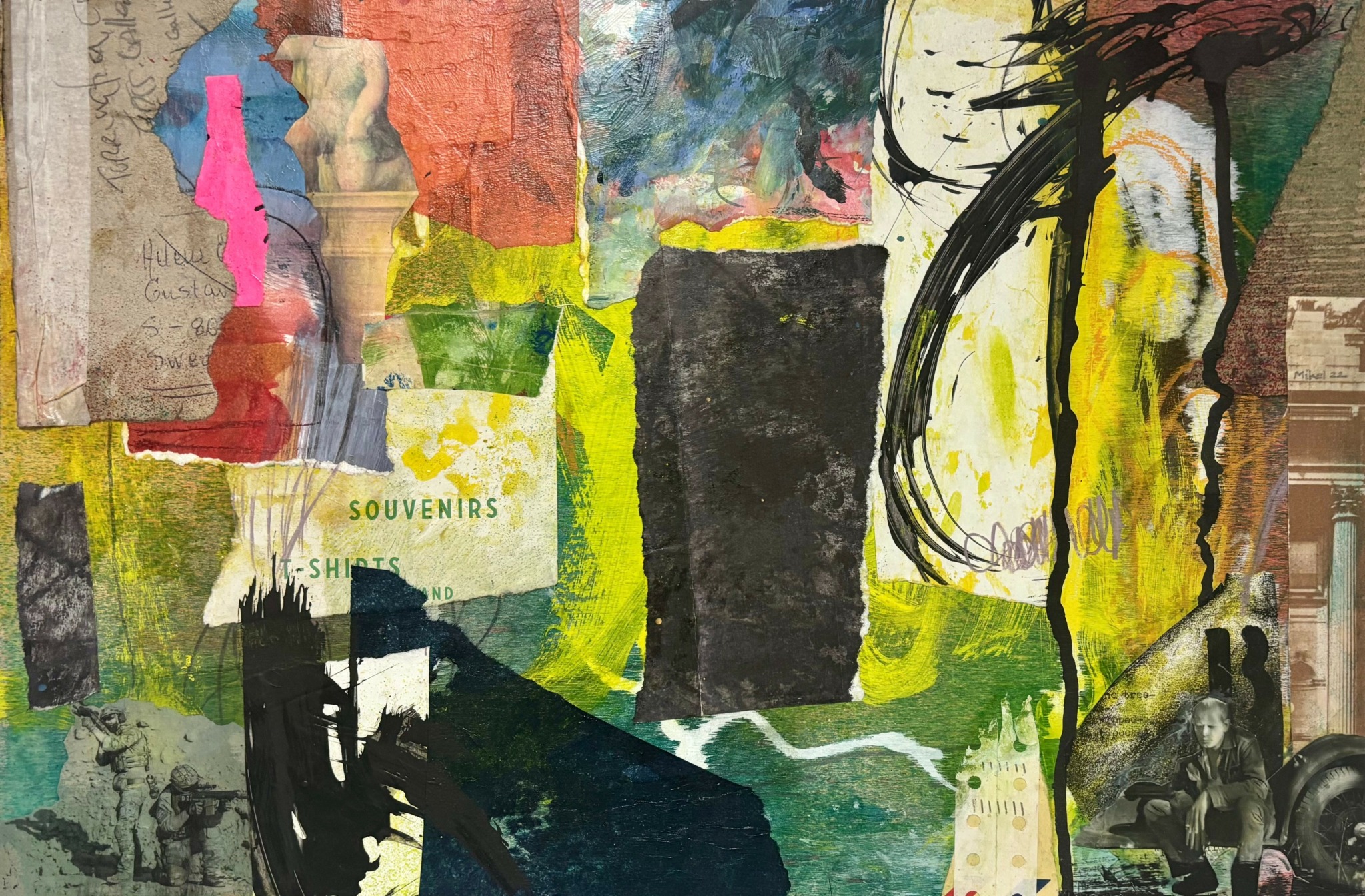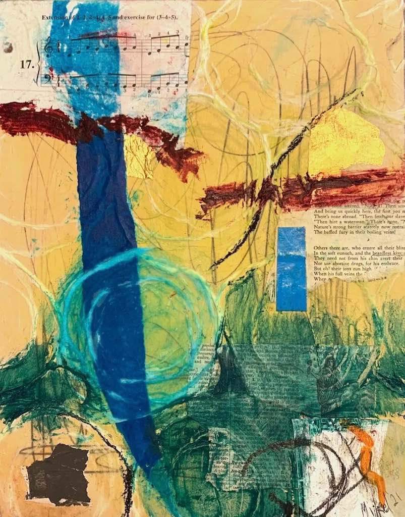 The motivation to pursue a career in art making first came to me when I was 10 years old, when I modeled for my mother’s painting class. Years later, In high school, I was always hanging out in the art room making something. Art seemed to be a calling and I followed it. After high school I was accepted into a liberal arts program and spent a year putting a portfolio together so I could apply to art schools. I was accepted into the bachelor of fine arts program at Maryland Institute College of Art (MICA). After graduating with a BFA I went out to San Francisco and studied at the S. F. Art Institute. There I met a few very inspirational artists. I was inspired. But, the west coast did not feel like the right fit for me and so I came back east and was accepted into the master degree program at Pratt Institute. This was an intense and motivational atmosphere of wonderful teachers and artists. I discovered how important it is to my creative process to work with other artists, talk about art, and discuss one another’s thinking and techniques while making art. This collaborative spirit led me to my first important collaboration with Gerard Amsellem. We painted together synchronously for about 10 years while continuing to create other works and working our day jobs to pay the bills. Together Gerard and I created many large scale multi-panel paintings and mixed media collages. In 2014, I retired from my long standing (29 years) job at The Metropolitan Museum of Art in NYC. I was finally able to devote all my time to my art journey. In 2016, I moved to Charlotte, NC where I am still busy being creative and delving into different levels of the art community here. First, I was a docent at The Mint Museum. Then I began teaching college level art courses at two local colleges. I then began another intense collaboration with Barbara Ellis, an abstract painter that has very similar sensibilities as me. We created 15 large paintings together culminating into a huge exhibition called “The Big Ass Canvas Show.” It was a great success in terms of reactions and reviews. However, we have yet to make any big money sales. I am currently the President of the Board of the Guild of Charlotte Artists. This is a volunteer job and I have been able to meet and collaborate some excellent artists through out membership of 370 and our 11 member board. We organize shows, art markets and presentations for our members. The biggest problem with being an abstract mixed media artist in the south is that nobody really understands or appreciates the value of abstraction. That said, I had some successes with selling, but it leaves much to be desired. My main thrust now is to exhibit, teach and collaborate. My website displays my work well and I try to market my work and my exhibitions and other involvements on Instagram. As a member of an international collaborative collective, Global Art Project, I am very active and able to exhibit my work Internationally. As an independent artist, I find it difficult to get the word out and get folks interested in buying work. Not jus my work, but any art works now. Times are tough, but I keep on making art. That’s the key to success, practice and get better at what you do.
