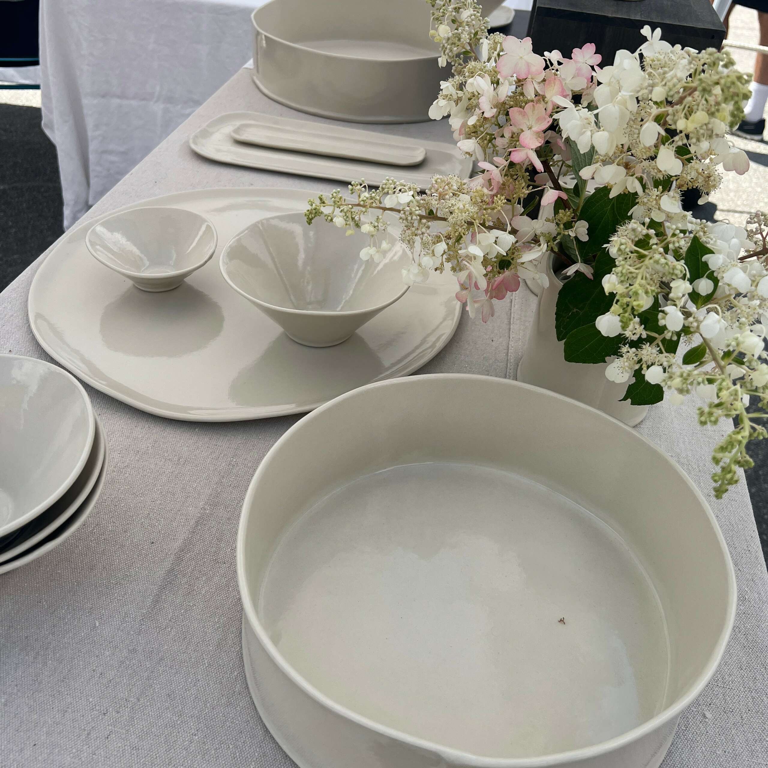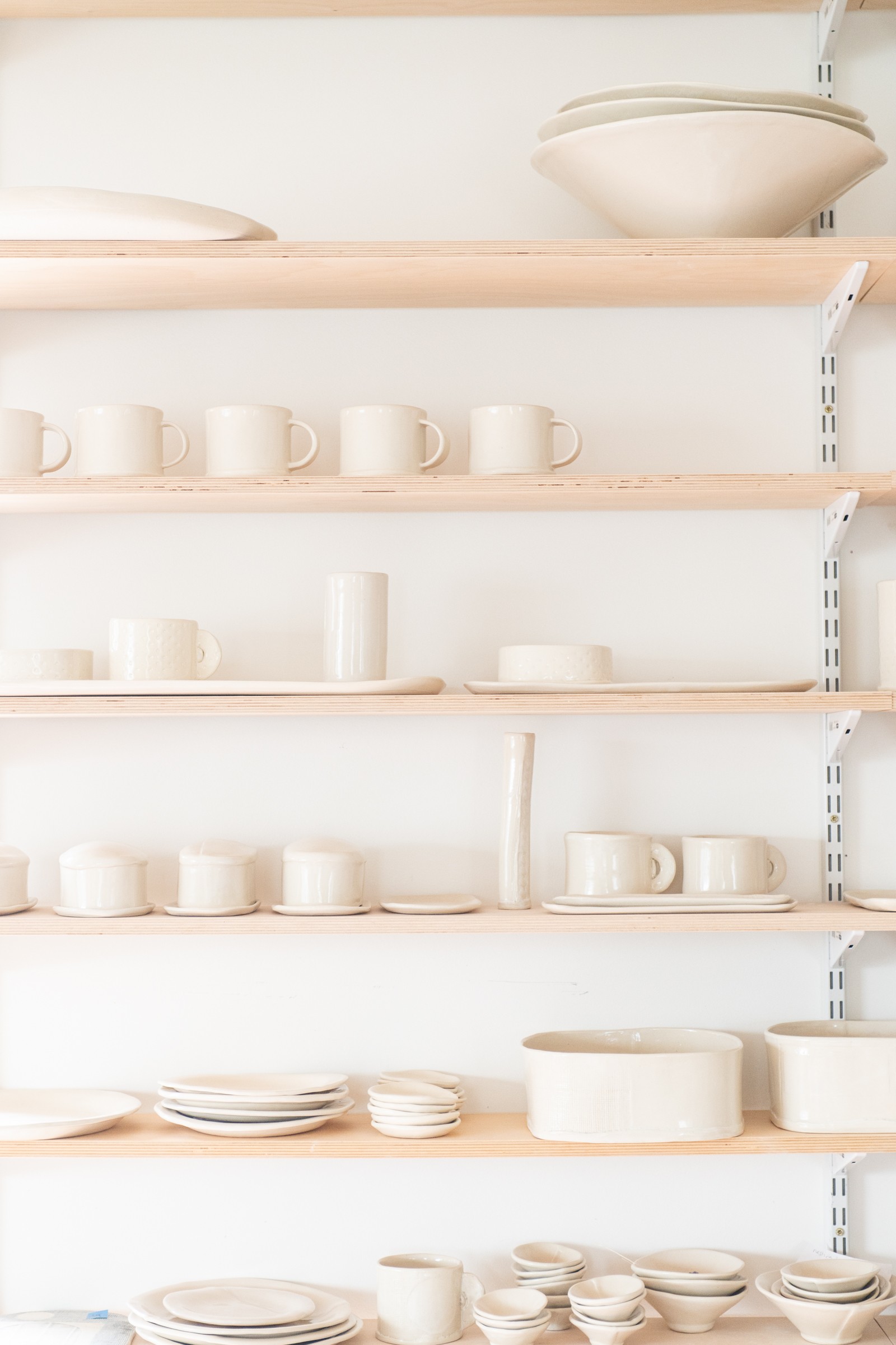 Hi, I’m Mimi, the clay artist and business owner behind SOFTSET ceramics. I produce small batches of hand-built utilitarian wares, glazed and fired to high temperatures to be durable for daily use. The SOFTSET name and brand has layers of meaning. It is the idea that while each piece is unique, the items are meant to intersect, nest, or stack to keep each other company like relatives or friends. There’s a practical aspect this serves as they are easy to use and to put away. There’s a design reason: visual conversations. My aesthetic preferences are sparse, elegant, and slightly organic. The combination of a soft white clay body and clear glaze, limited marks, and repetition of the seam is designed to encourage touch and handling. This is grounding. There is also a conceptual invitation: SOFTSET ceramics evokes softness, simplicity, generosity, and beauty for collectors. We are a part of the collections we curate. When we live with and use art objects, we connect with them.