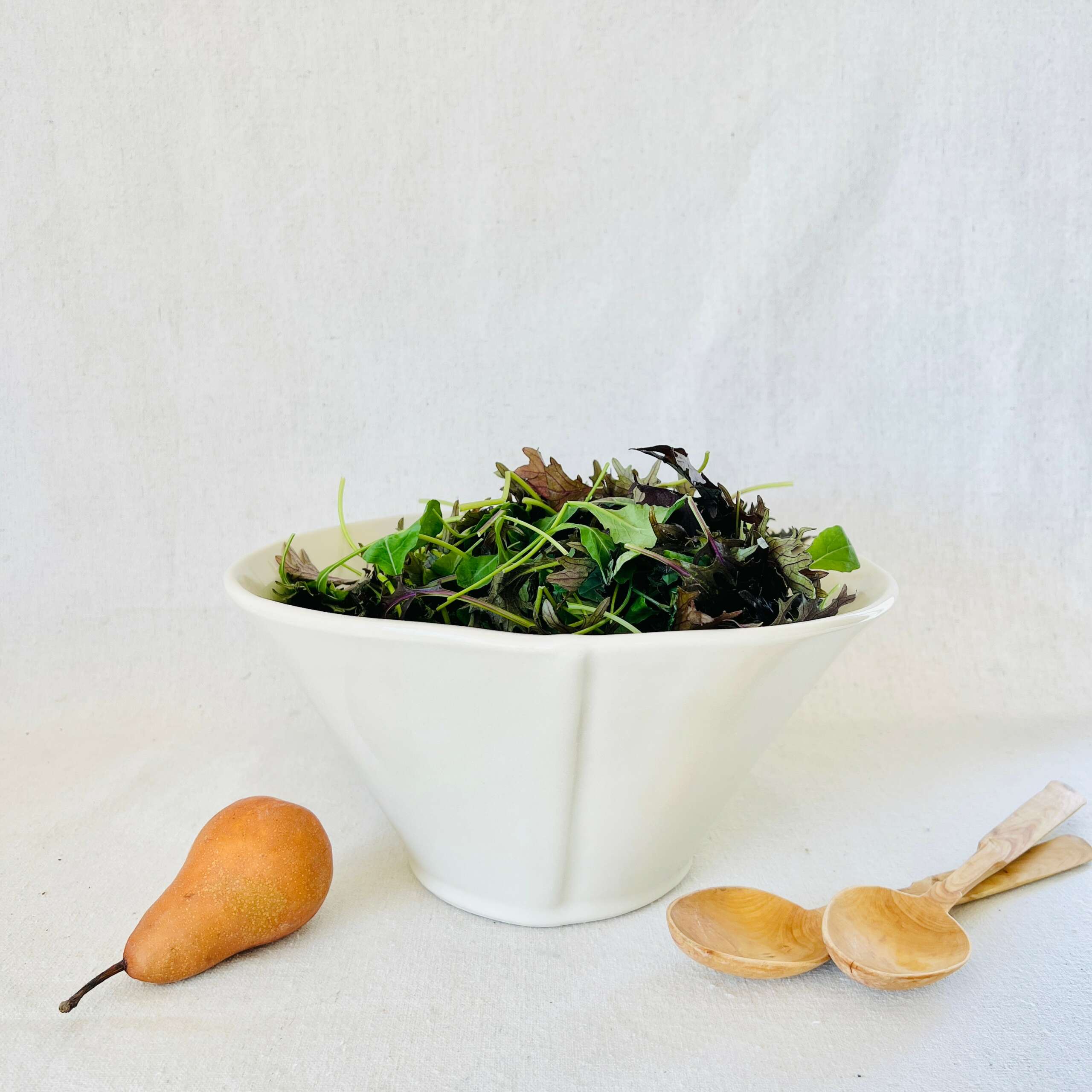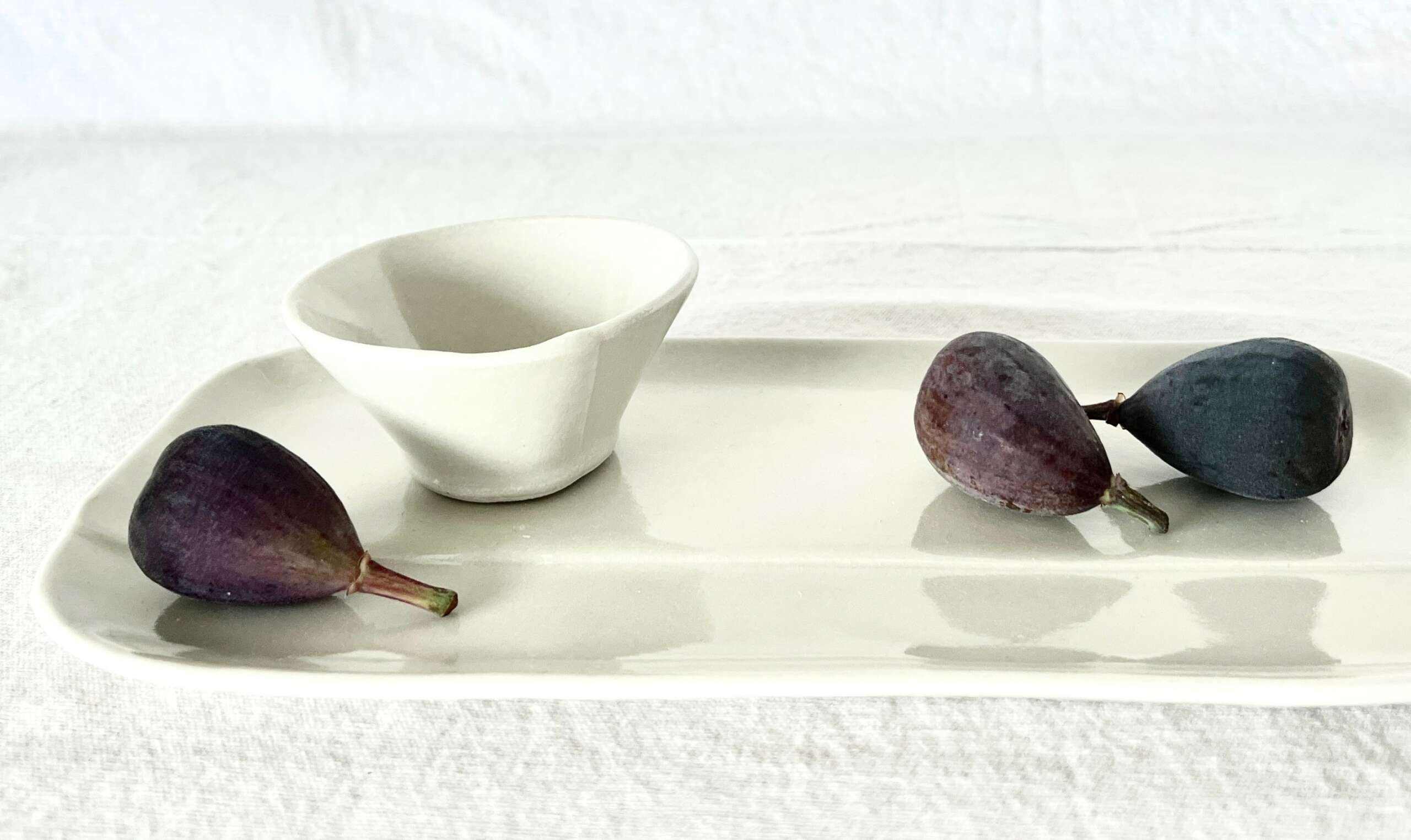 SOFTSET has so many meanings; it’s an unfolding process of discovering how well it suits my work and mission as a business. As I began, I wanted to create a body of work that held together visually. The style of the forms speaks the same language, with just a hint of organic line softening corners and rims. The clear glaze on the warm, bone-white clay is simple. It pairs well with endless combinations of colorful foods and home design styles. The lines within the SOFTSET brand are easy to mix and match, but they also make beautiful accent pieces amidst eclectic collections.
