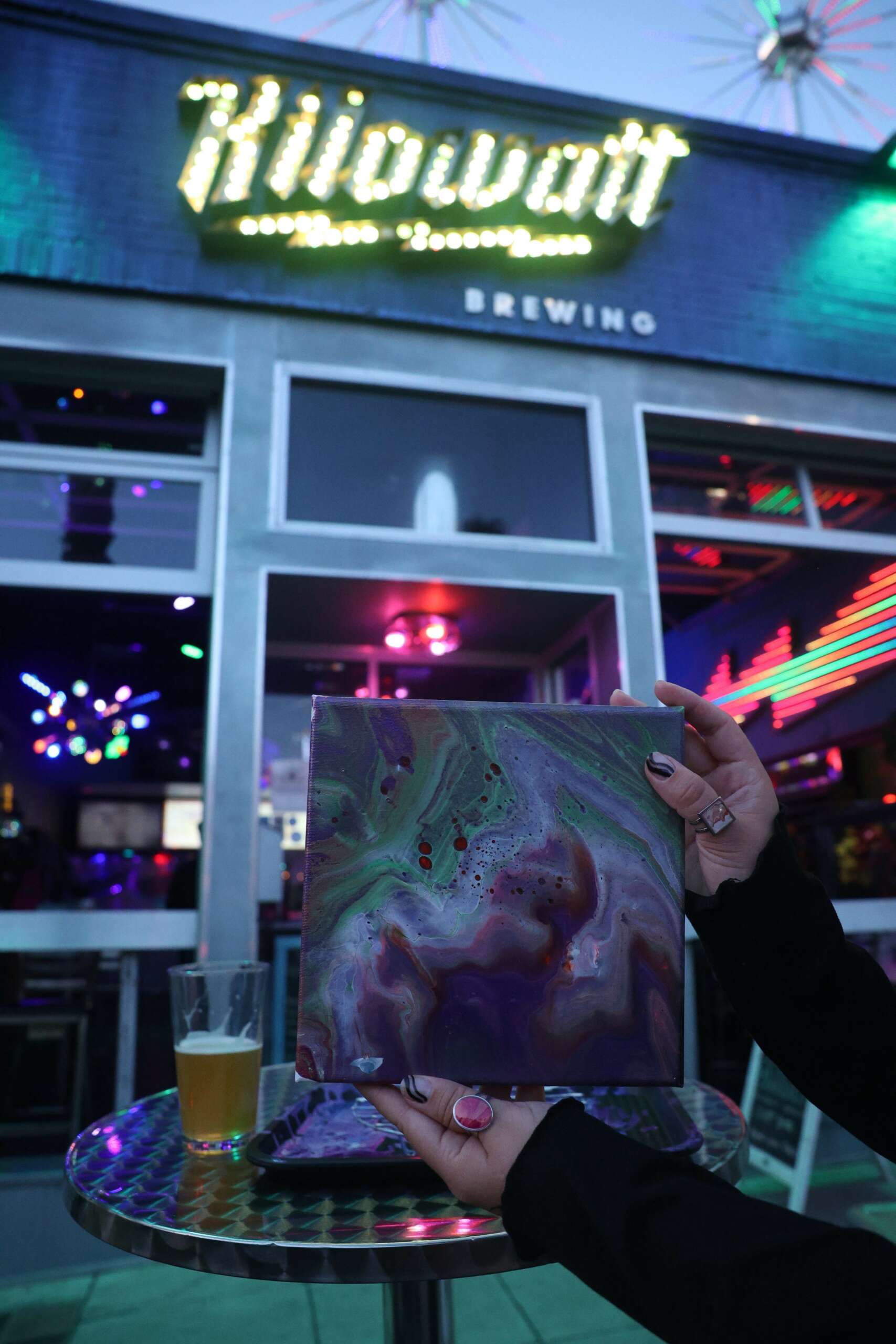 My name is Miranda Vibes and I’m a small business owner and art instructor of Paint and Pour, an unconventional paint and sip class that pops up monthly in Oceanside. I teach fluid acrylic art techniques like the #satisfying paint pouring videos you may see online.