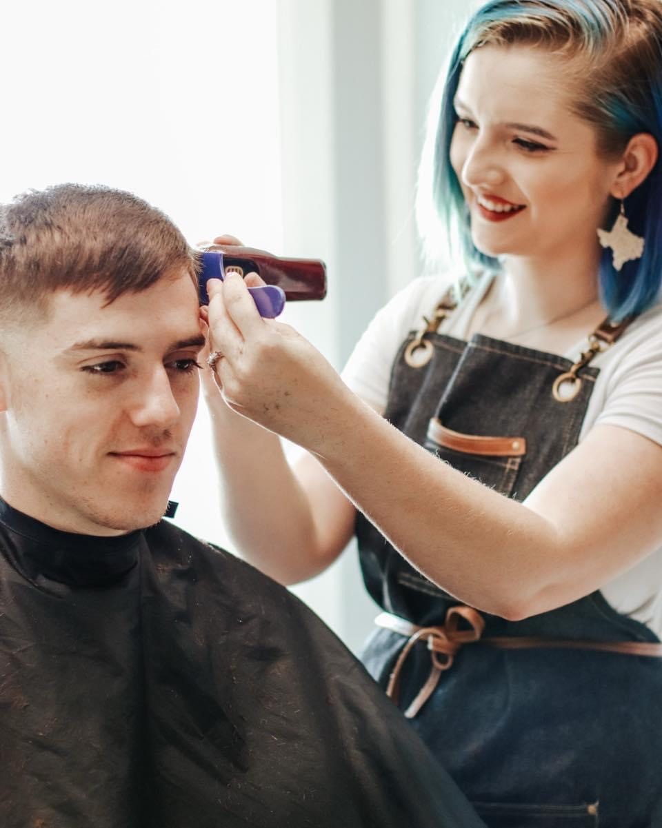 I started cosmetology school at 18 and I wasn’t sure what I wanted to really do with my life. We had a class about clipper haircuts by a local barber and I fell in love! She took me under her wing and showed me everything she knew. I graduated cosmetology and passed my state test and went to the closes barber school to sign up. I started working at a local Sport Clips with my cosmetology license to get my feet wet and improve on my skills. About a year goes by and I graduate from barber school and I’m still at the same job. Then my mentor came to me saying she was ready to open her own shop! I was beyond excited to work alongside her again and become the best I could be!