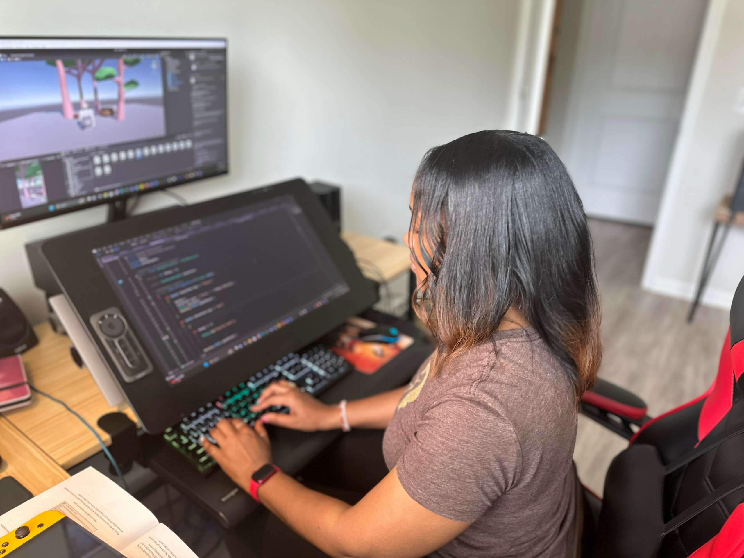 While I have always enjoyed playing video games and love watching older (mainly black and white) movies, it never crossed my mind that I could actually bring my creative thoughts to action. Years ago, I began writing all the stories in my head down on paper and when I met my boyfriend some years after that, one day we were talking about certain things we liked and disliked about the games we played and he came up with the idea of us making a game. I had no idea about how to make a game or any of the programs to use; however, once we started looking up everything we needed and began using the programs, I knew right then this is what I wanted to do. I have tried so many business opportunities in the past because I have always wanted to have my own business; however, my heart was not in those things that I was trying as I didn’t enjoy any of it like I thought I would. Game development has been and will continue to be an amazing journey and passion for me because I wake up every morning being excited about what I’m doing. I never considered myself a creative person when I was younger; however, when I got older, the writer in me just started revealing itself because (even to this day) I have so many other ideas for video games and animation shorts (and film) that I have yet to put it all on paper to start bringing the ideas to life. It was a huge milestone for me when I released my first published game (Match Time – on the Google Play store app) because it was a reminder that, even though it may sound cliche, I have always believed that when you set your mind on doing something, truly believe in yourself, work smart, and not give up, you will see fruition. Having a creative mind is one thing, but to have that passion to actually pursue it means a lot to me.