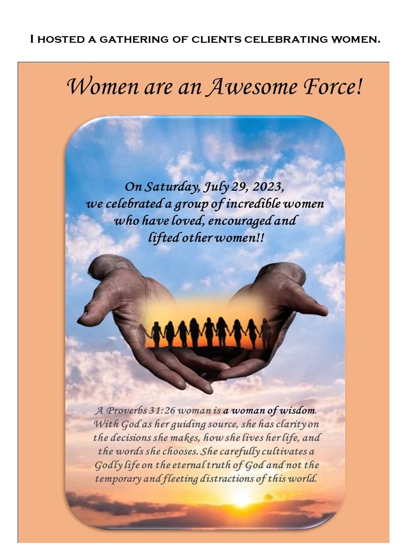 After almost two years of sadness and grieving the loss of my husband, I decided to use my creativity to produce an opportunity for me to work from home. So, I started a creative and administrative services business.