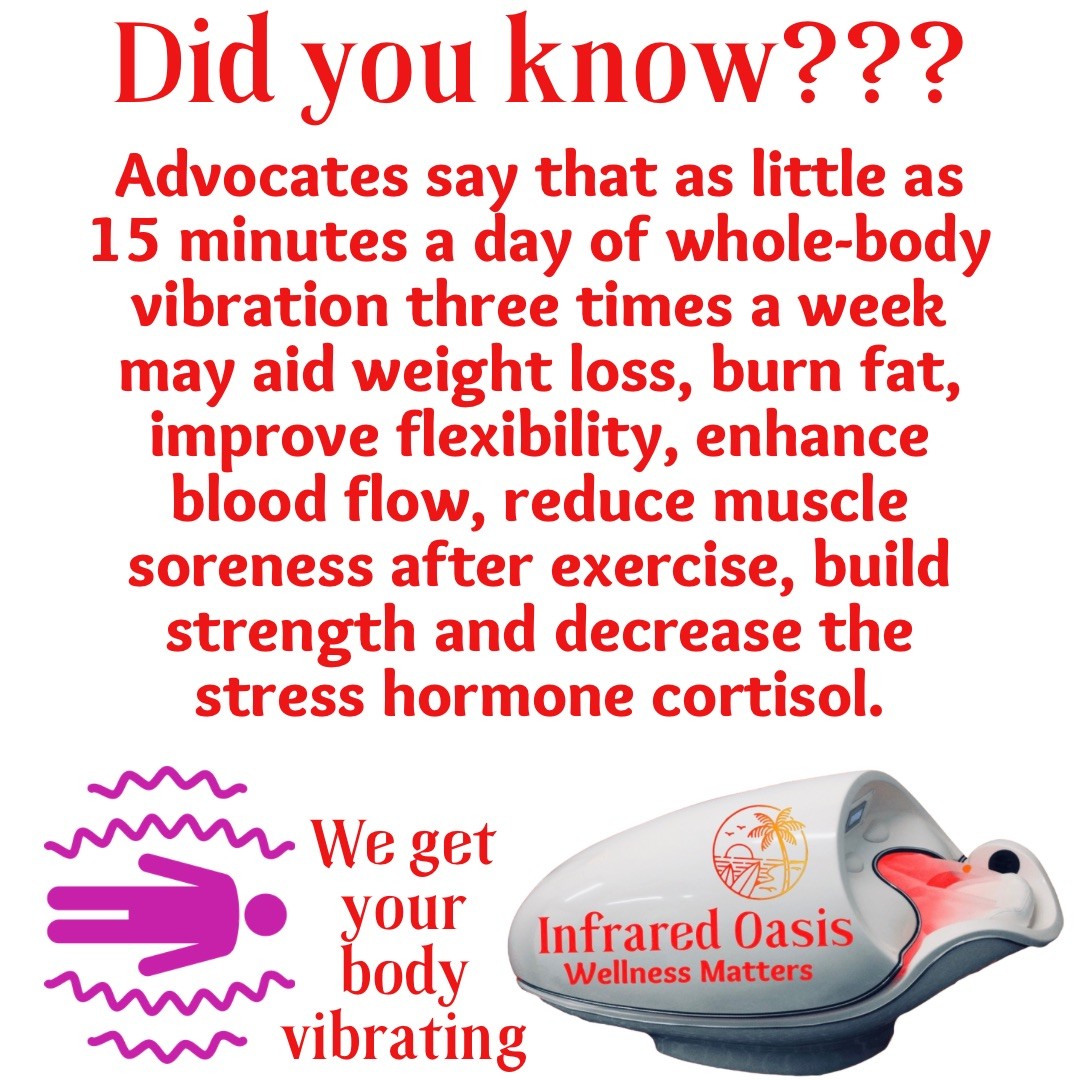 Now I am learning more and more about all the benefits of infrared, red light and vibration therapies all together the list goes on and on. I have stayed healthy through covid and I used to be sick all the time (increased immune system) I lost 60lbs (detoxification and burns calories) I stopped taking my pain medications (reduced joint,muscle, nerve and phantom pains) I can raise my hands all the way over my head (increased collagen in my scar tissue) increased my mobility after a total knee replacement (reduced inflammation, swelling and muscle recovery).