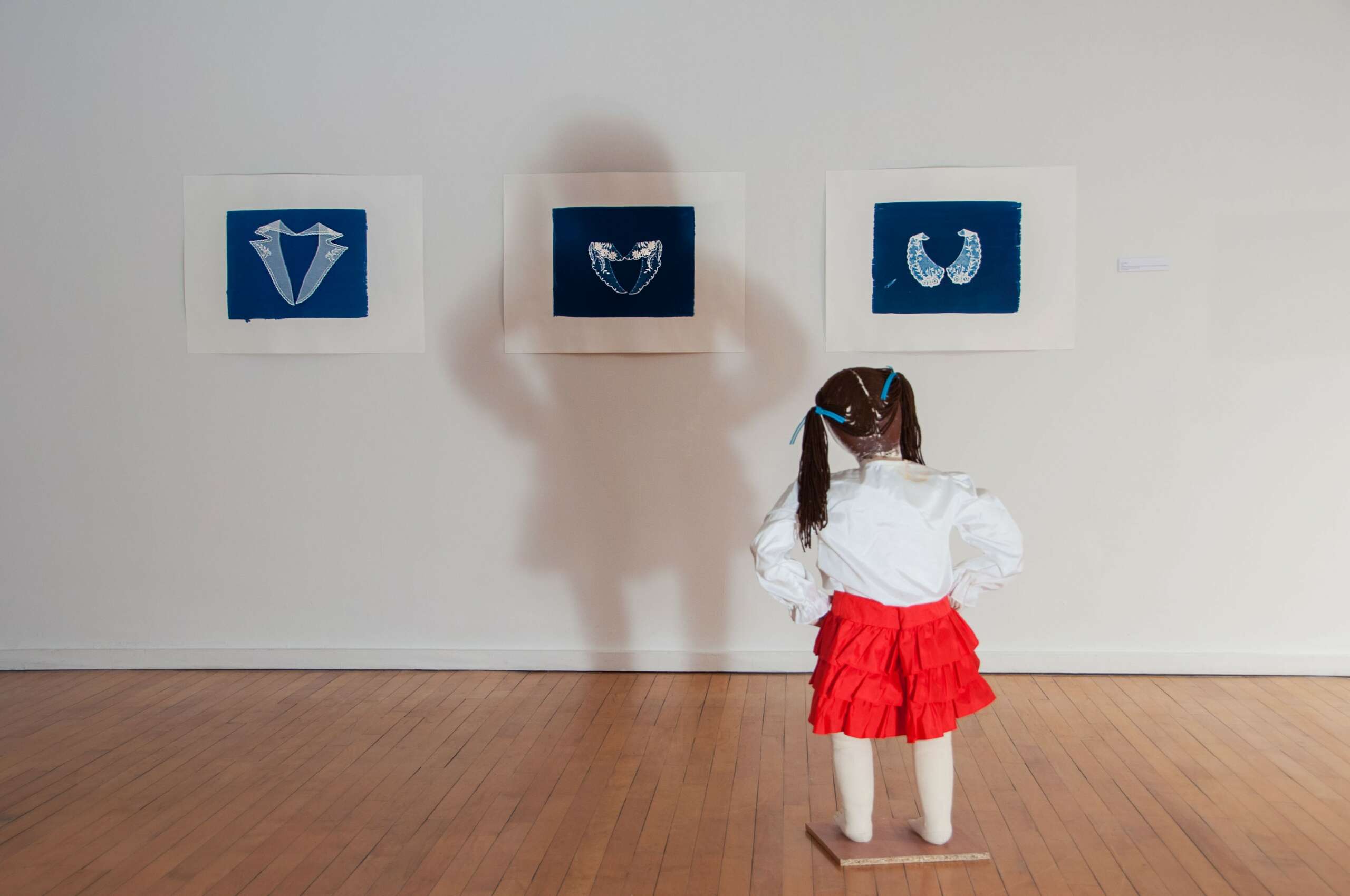 I am a photo-based installation artist and storyteller. That means photography is the foundation for the large scale projects I make and the stories I tell. I have always been curious and artistically inclined, but I pinpoint the moment that I knew I wanted to pursue my artistic calling when I was in high school. A friend snapped a photo of me, and a week later, he handed me a black and white, silver gelatin print of me. That piqued my curiosity, and I needed to learn how to make photographs. Curiosity continues to be the motivation and inspiration behind all of my work. Earlier, I mentioned the term cyanotype, which is an antiquarian photographic process that dates back to 1842. It uses sun/ UV light to expose and water to develop. It gets its name from its prussian blue color. I work in a variety of photographic processes and ideas, and I feel like my unique style is what makes my work distinguishable as mine.