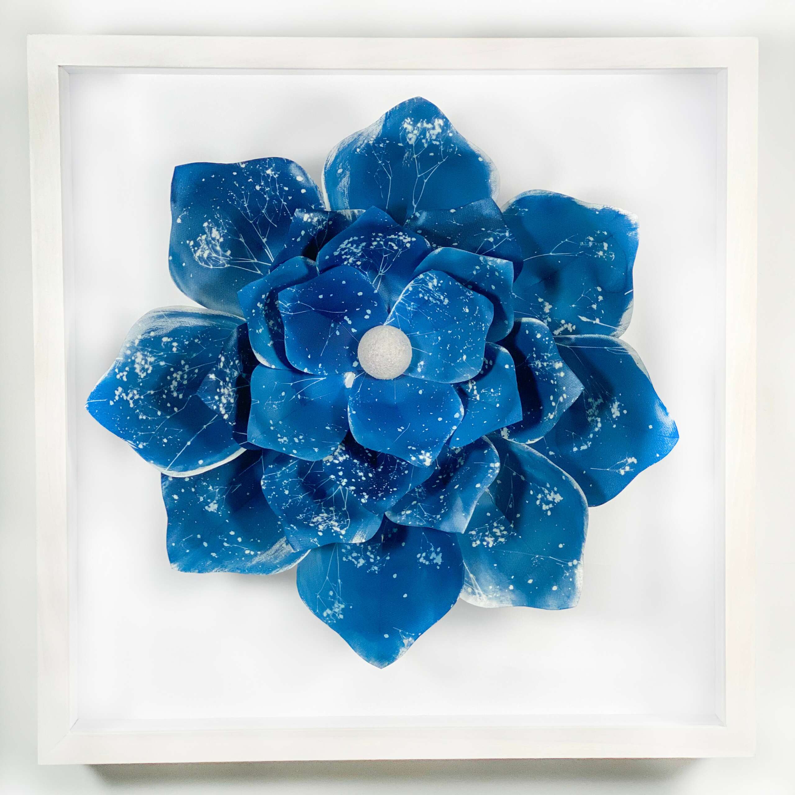 I am a photo-based installation artist and storyteller. That means photography is the foundation for the large scale projects I make and the stories I tell. I have always been curious and artistically inclined, but I pinpoint the moment that I knew I wanted to pursue my artistic calling when I was in high school. A friend snapped a photo of me, and a week later, he handed me a black and white, silver gelatin print of me. That piqued my curiosity, and I needed to learn how to make photographs. Curiosity continues to be the motivation and inspiration behind all of my work. Earlier, I mentioned the term cyanotype, which is an antiquarian photographic process that dates back to 1842. It uses sun/ UV light to expose and water to develop. It gets its name from its prussian blue color. I work in a variety of photographic processes and ideas, and I feel like my unique style is what makes my work distinguishable as mine.