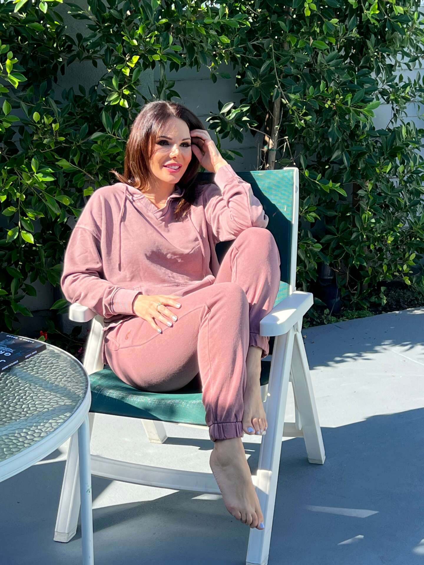 The two head shots were taken by Brian Parillo. The shot in the pink leggings and green top are from the brand Canary B Active The photo int he purple sweats is from brand Colosseum Active The remaining two photos in the High Vibe T shirt and the crop with the tower card on it are from the High Vibe TV merchandise