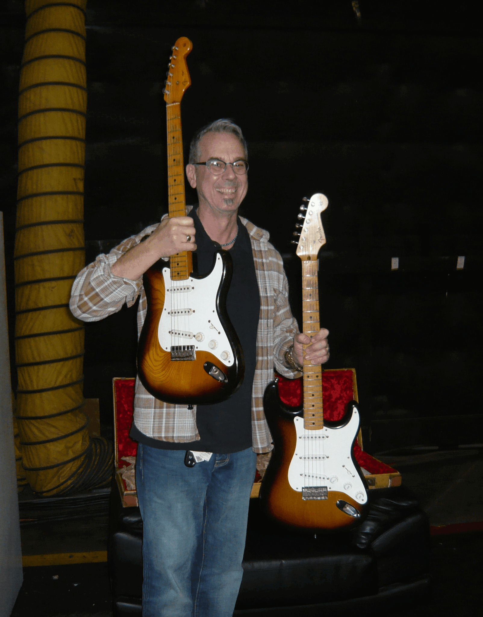 The trouble was it took 6 hours away from work and I called my boss after 2 hours and he said “get home now or you are fired”.. oh man. No cell phone back then, thank goodness, because after getting fired on the phone it still took another 4 hours to empty the trucks and find the problem guitar. I worked on it right up to 15 minutes before show time. (No stress there, nope)