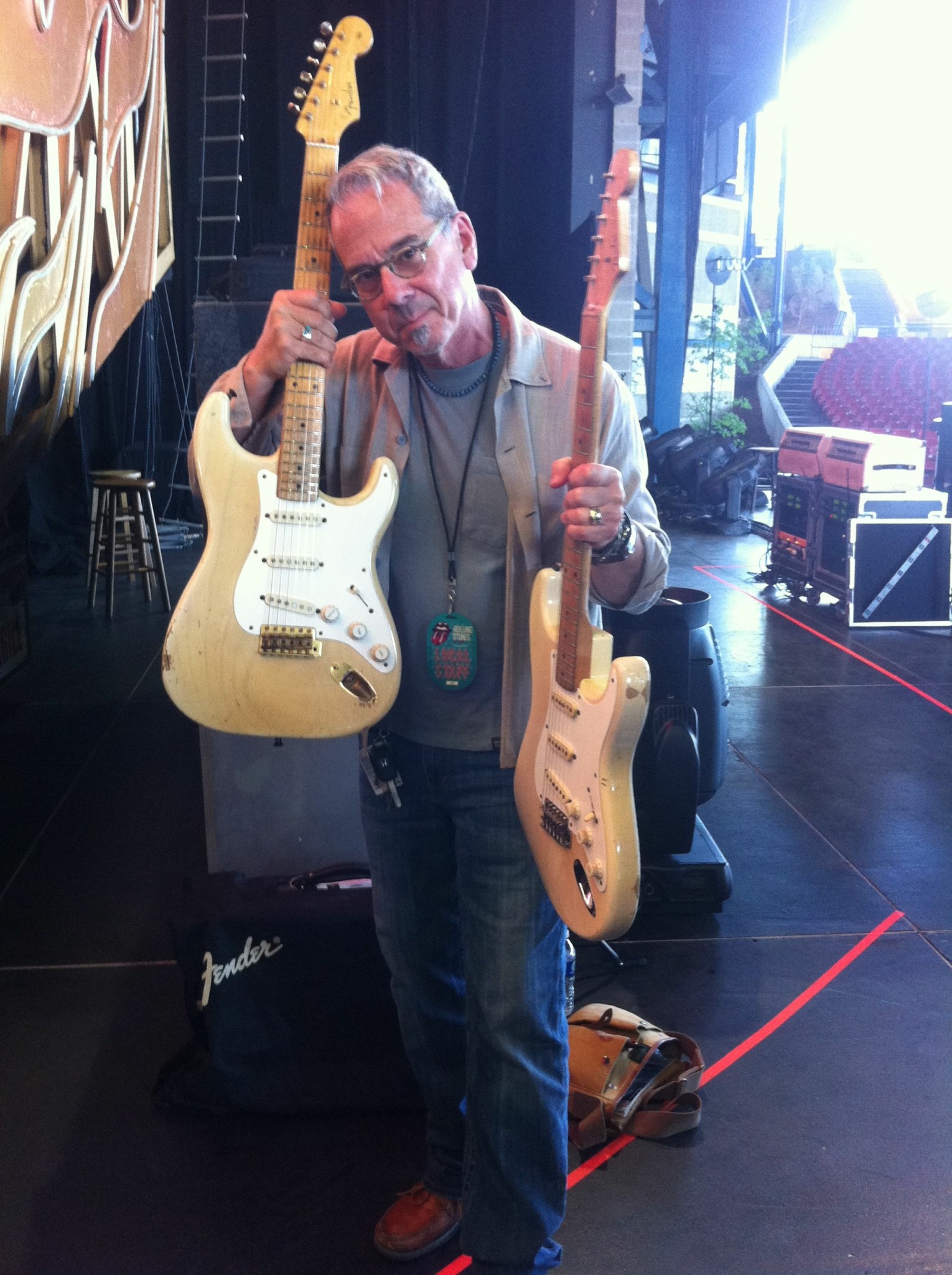 Nate back stage with Rolling Stones 2 of Ronnie Woods guitars