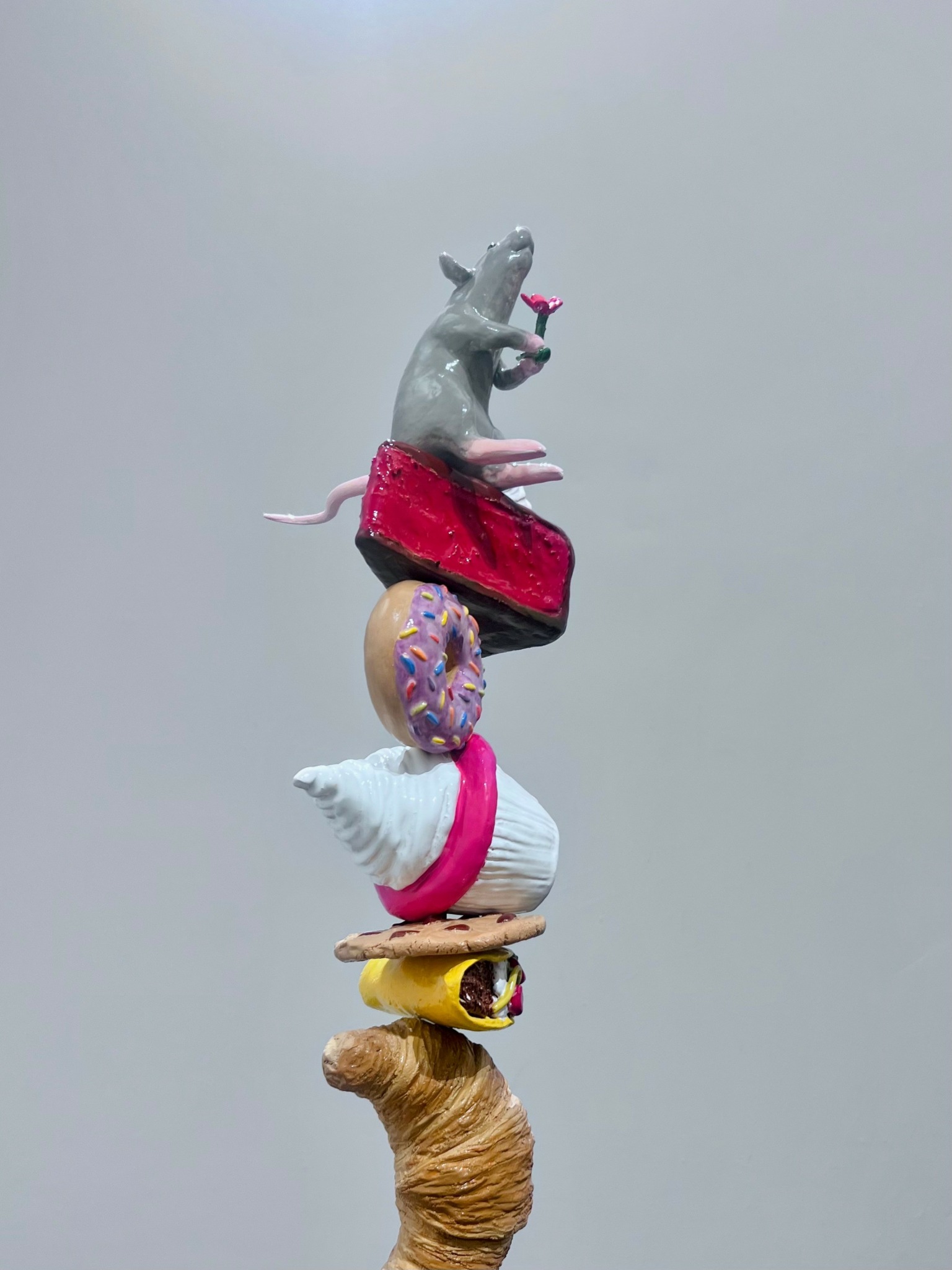 Lately, I have grown a passion for ceramics, and I’m currently working on a series of “towers” that juxtapose various objects and animals, all balanced delicately. This fragile equilibrium is also reflection of the precarity of our own existence and relationships. I like to see my sculptures as visual poems, allowing me to tell stories and build worlds where my imagination is only limited by gravity.