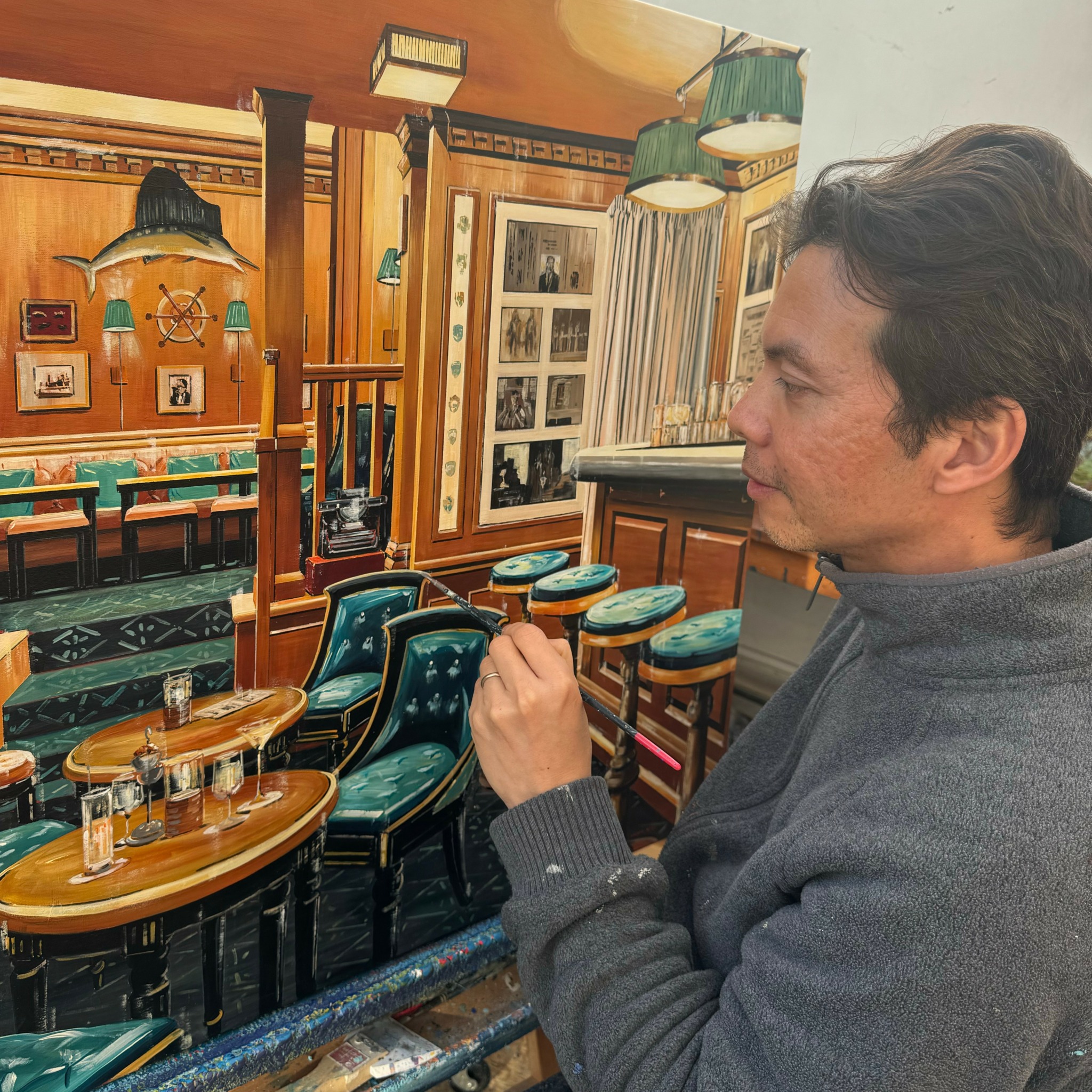 Born in 1979, I create paintings that combine sophistication and surrealism, transforming familiar interiors into dreamlike sanctuaries. Carefully detailed compositions, illuminated by warm atmospheric light, evoke nostalgia while retaining a contemporary appeal. Through the interplay of expressive brushstrokes and vibrant colors, I invite the viewer into an immersive space that stirs the imagination.