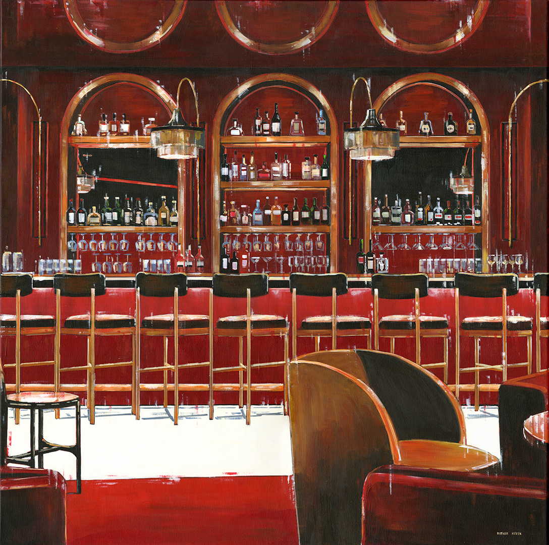 Chelsea Hotel Bar NYC, Acrylic and oil on canvas, 39×39 inches.
