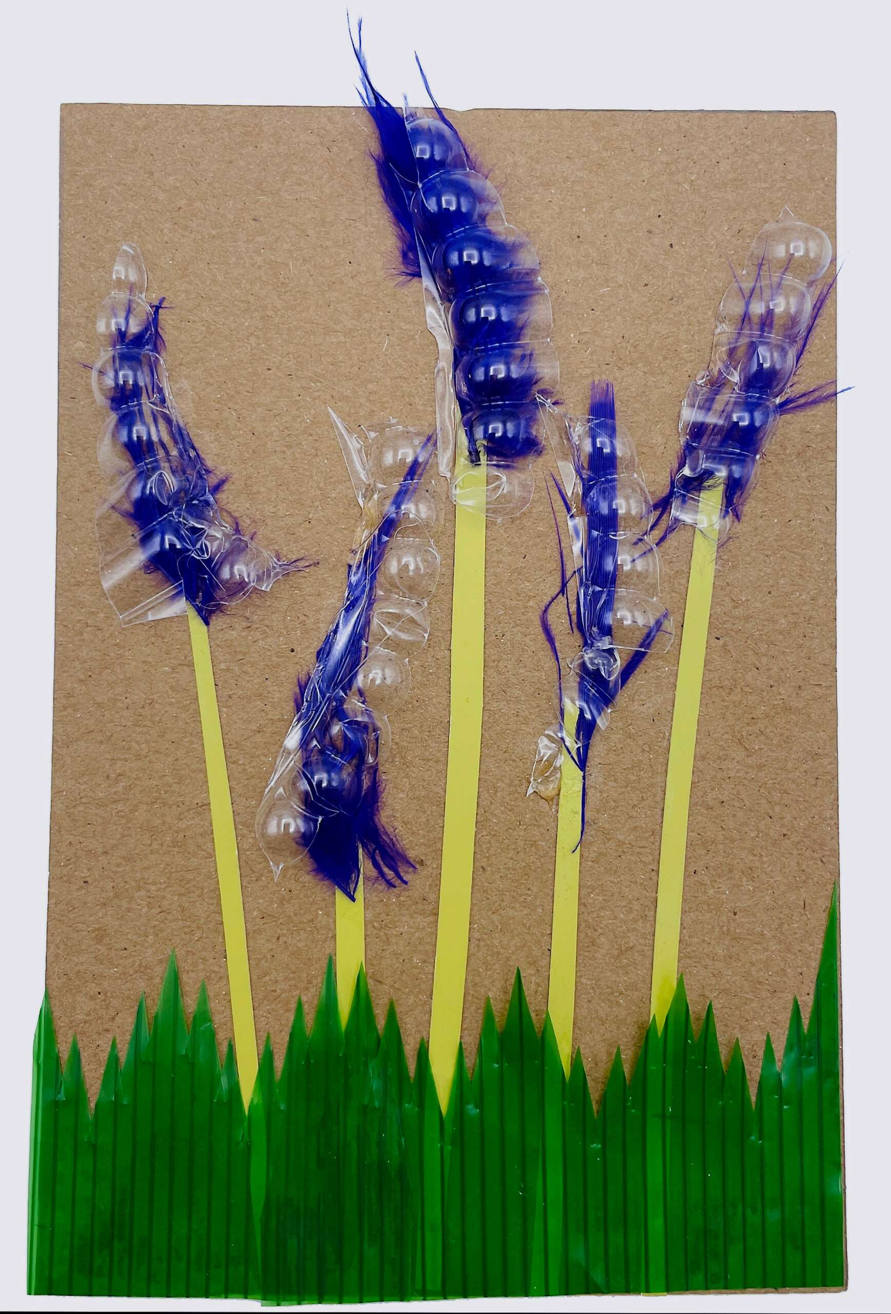For several years now, one of the most important foundations of my art practice has been the use of discarded paper acquired from day-to-day living, i.e.: junk mail, gift wrap, cereal boxes, and the like. I see a lot of potential in many of these throwaway items. Recently, through the help of the algorithm on Instagram, I came across an artist (Natalya Khorover) who also uses repurposed material in her work, although her focus was on plastic. Since Earth Month was coming up, Natasha put out a special challenge. Participating artists were to go plalking (definition: Take a walk outdoors and pick up trash) and construct a “flower of the day” based on Natasha’s prompts.