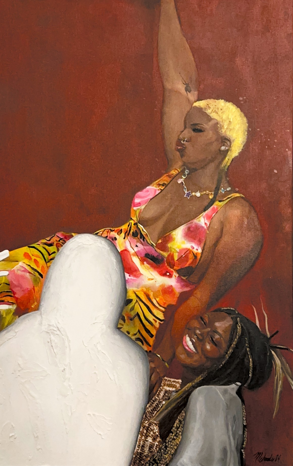 I learned to do what I do through years of trial and error, observing the world around me, and immersing myself in both traditional and contemporary art. Throwing paint at the wall and seeing what sticks. Being self-taught, I didn’t have the benefit of formal instruction, so I relied heavily on books, online resources, and a lot of practice. I spent hours studying the works of artists I admired, like Betty Saar, Charles White, Lois Mailou Jones, Faith Ringgold, and more, trying to understand their techniques and translating them into my work. Over time, I developed my style, refining it through constant experimentation.