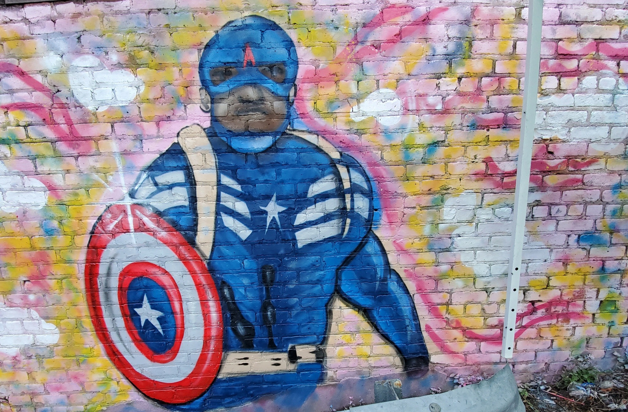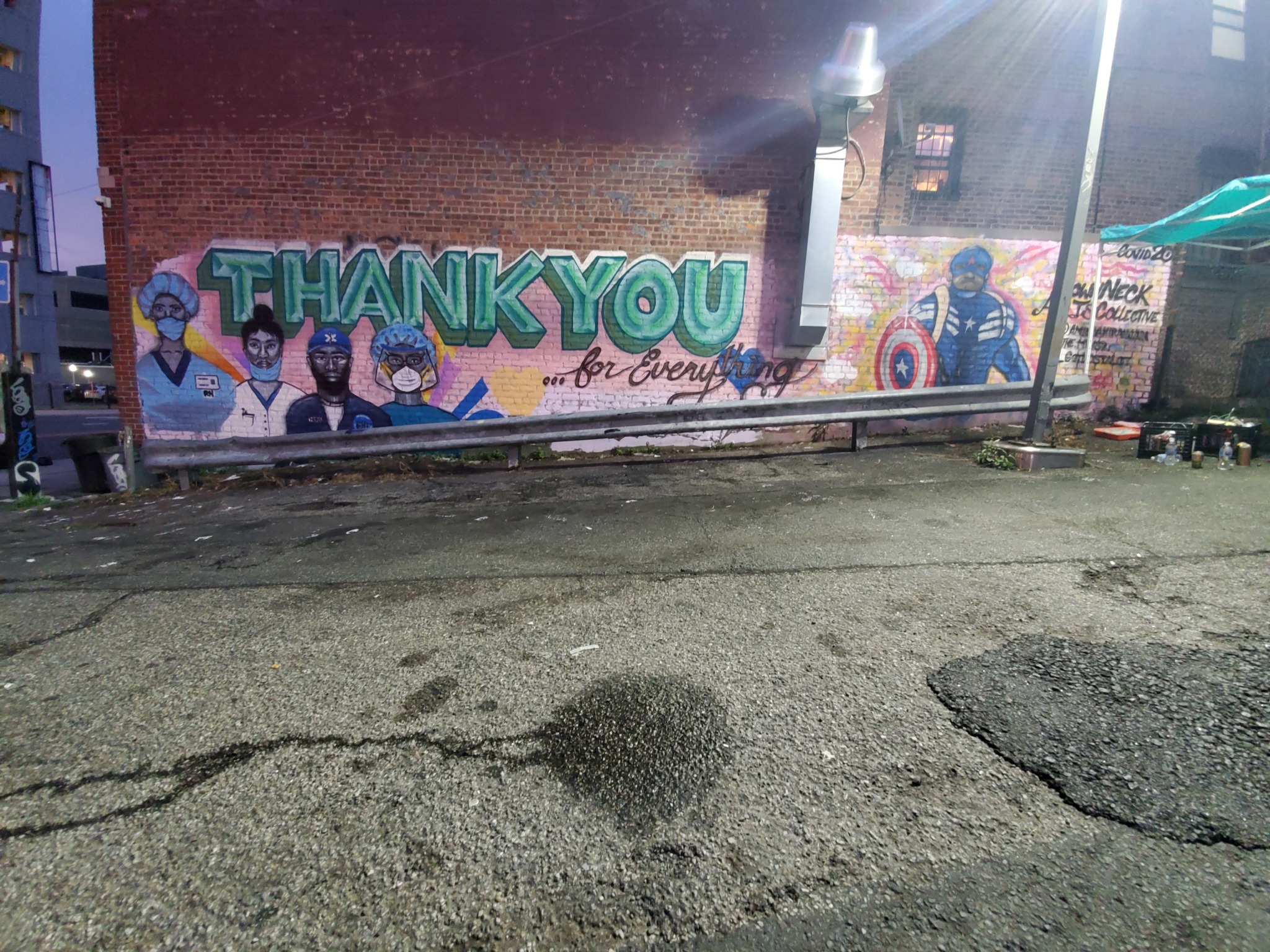 I was talking to the local artist about a drawing I had done and asked if I could contribute to the wall and he didn’t hesitate to say sure. So, I took out my cans and began laying down the foundation for what I would do. We all assisted one another in our own creations and made our contributions during a time that had more questions than answers, more uncertainties and a lot of death happening around us. By divine intervention, this wall ended up being across the street from the city’s largest hospital and trauma center, so with this mural up, it will serve as a reminder to the frontline heroes that they too wear capes and are appreciated. The mural read “Thank You Heroes” with a nurse character and my Captain America character. It was a proud moment as I myself worked in an emergency room and will never be able to unsee what I saw during those times. Yet, as an artist, it was a way I can pay it forward and give thanks, so to be a part of this wall was humbling.