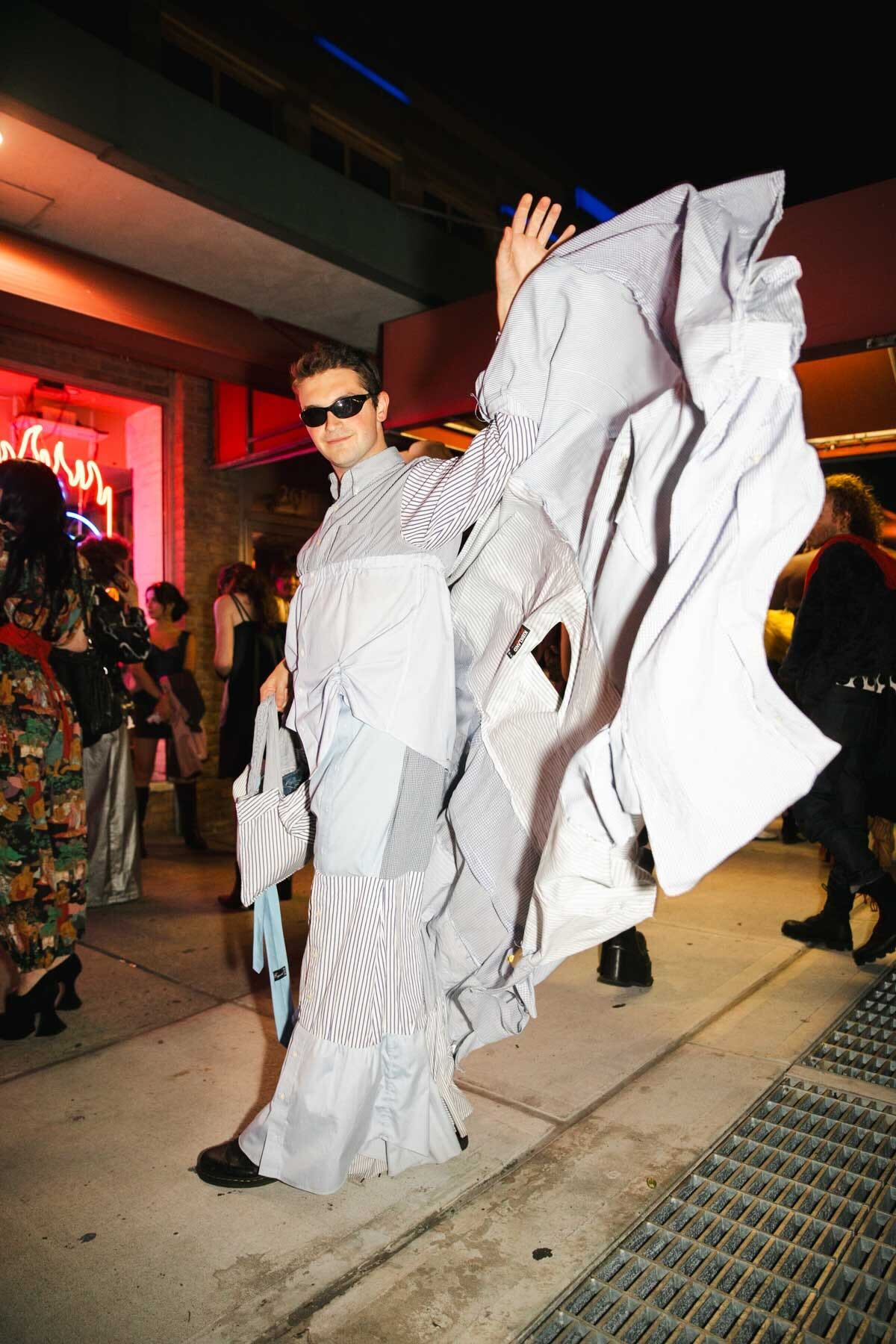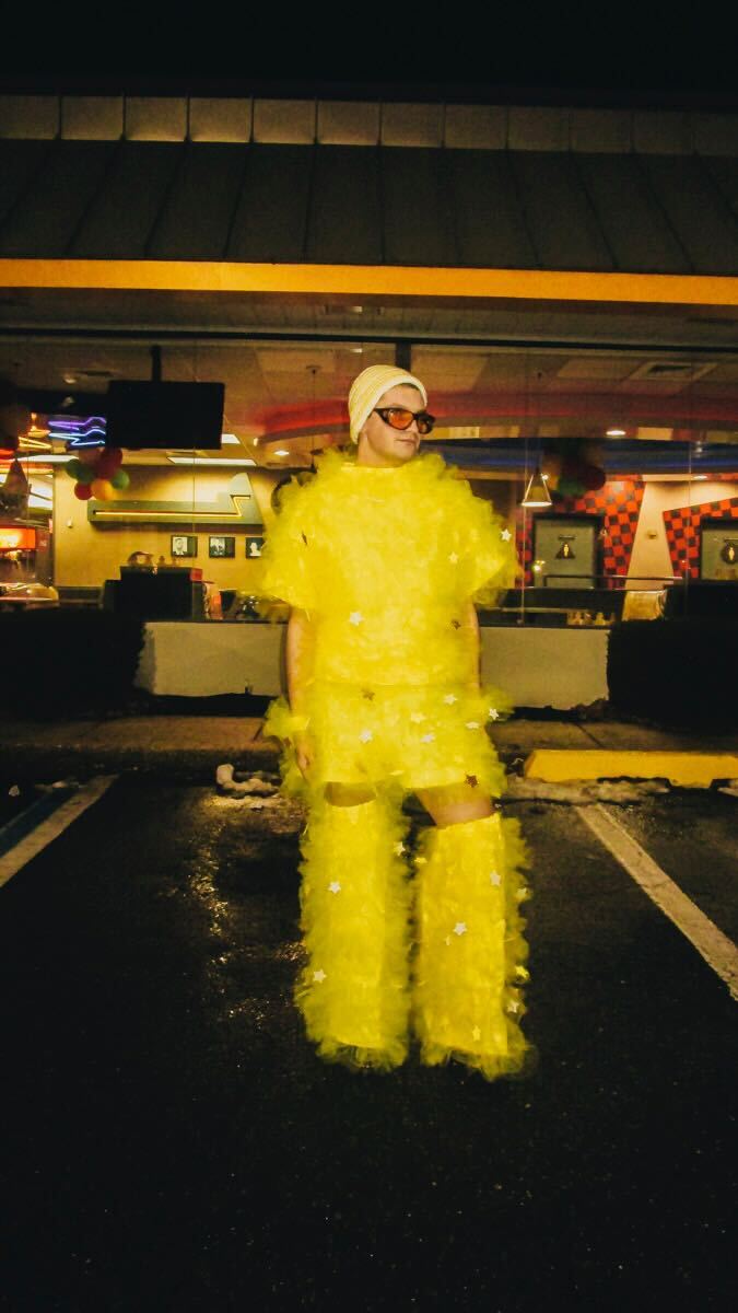 My work is inspired by camp in fashion and definitely has some influences from Moschino, Viktor & Rolf, KidSuper, and more. I was also an intern for The Blonds for one season of New York Fashion Week and drew a lot of inspiration from them. I would love for those wearing my clothes to feel beautiful and cool inside them, but also have a sense of humor and enjoy what they’re wearing.