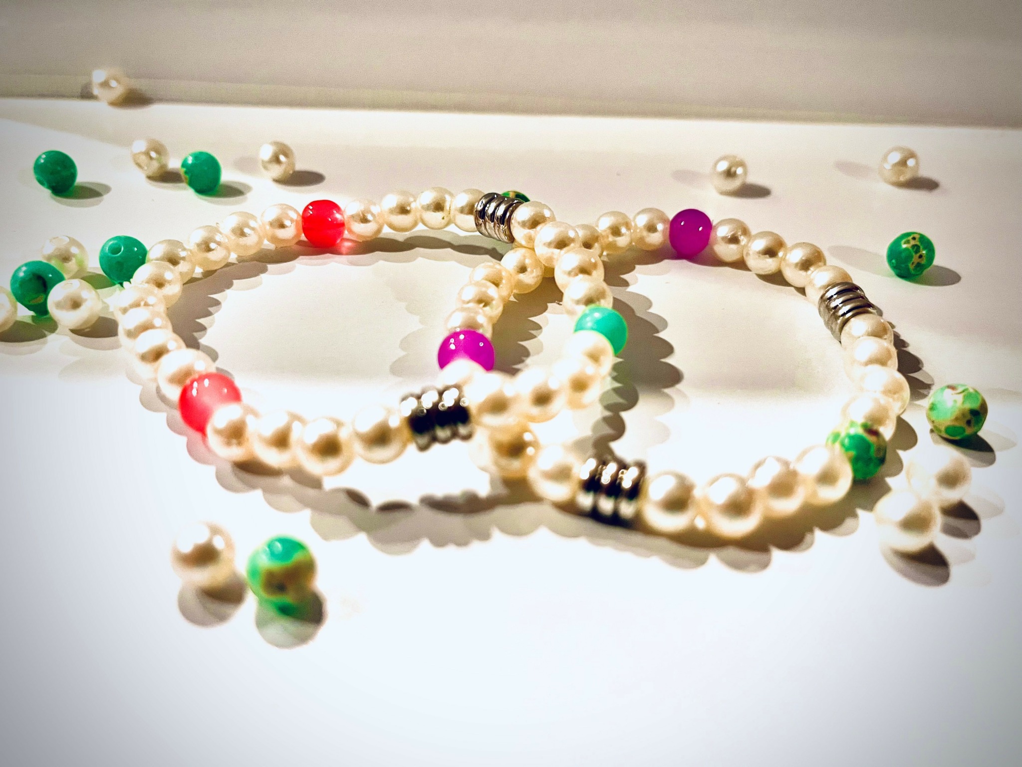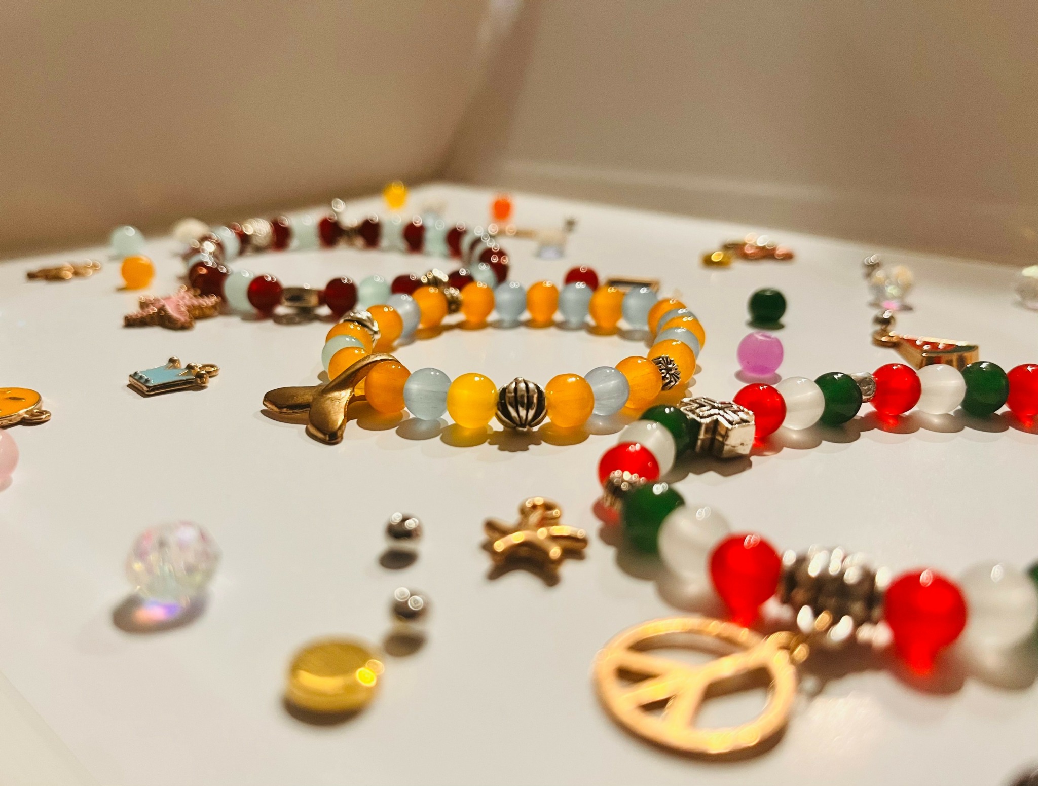 I was holding up a bracelet I made toward the sun, and the light hit it in the most beautiful way. It gave off a soft glow and looked like it was surrounded by a haze. That moment inspired me to name it Glow and Haze.
