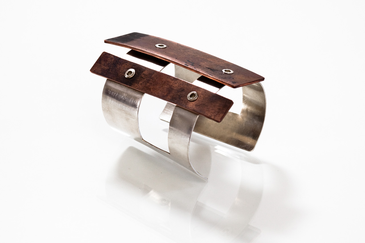 When I was little, I used to cut out tiny geometric shapes of construction paper and glue them to found rocks in some kind of decorative configuration. I’d make them fancy with a coat of clear nail polish and try to sell them to neighbors as plant and garden accessories. I guess a love for functional art is just in my nature. Eventually I came into jewelry making by way of welding and making large steel sculpture and mixed media furniture pieces. As such, my jewelry is also sculptural. And everything I do is fabricated in one-of-a-kind fashion, by hand, by me. I love kinetics and illusions, and elegance with an emphatic edge. My ideas come mostly from misjudging spatial relationships and the overlapping of objects, where I visually architect new structures that I’m curious to build, and (for some reason) wear. So, I’ll turn anything from a paint spill to the Brooklyn Bridge into a necklace. I’m more interested in seeing these ideas and experiments through, than I am in creating a consistent line or being on trend. I almost never reproduce things and I only occasionally do commission pieces. This doesn’t add up to what’s typically a recommended business model! But I sell my work in retail and museum shops, and I stick to my method because it keeps me moving forward. It’s all crafted with curiosity and care, and I’m proud of that. My process is weird and slow and kind of irreverent, but what I always aim to yield is something authentic and true to my nature.