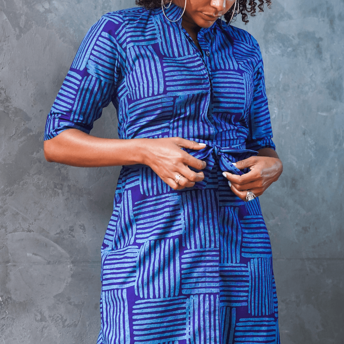 Then came an unexpected turning point. At a trade show in New York, I stumbled upon a pavilion showcasing sustainable brands from across the globe. There, I met a woman I call “Mama Esther”, the owner of a family run batik workshop in Accra, Ghana. She’d been handmaking batik fabrics for over 35 years. Within a week, she was in Chicago — and that meeting changed everything.