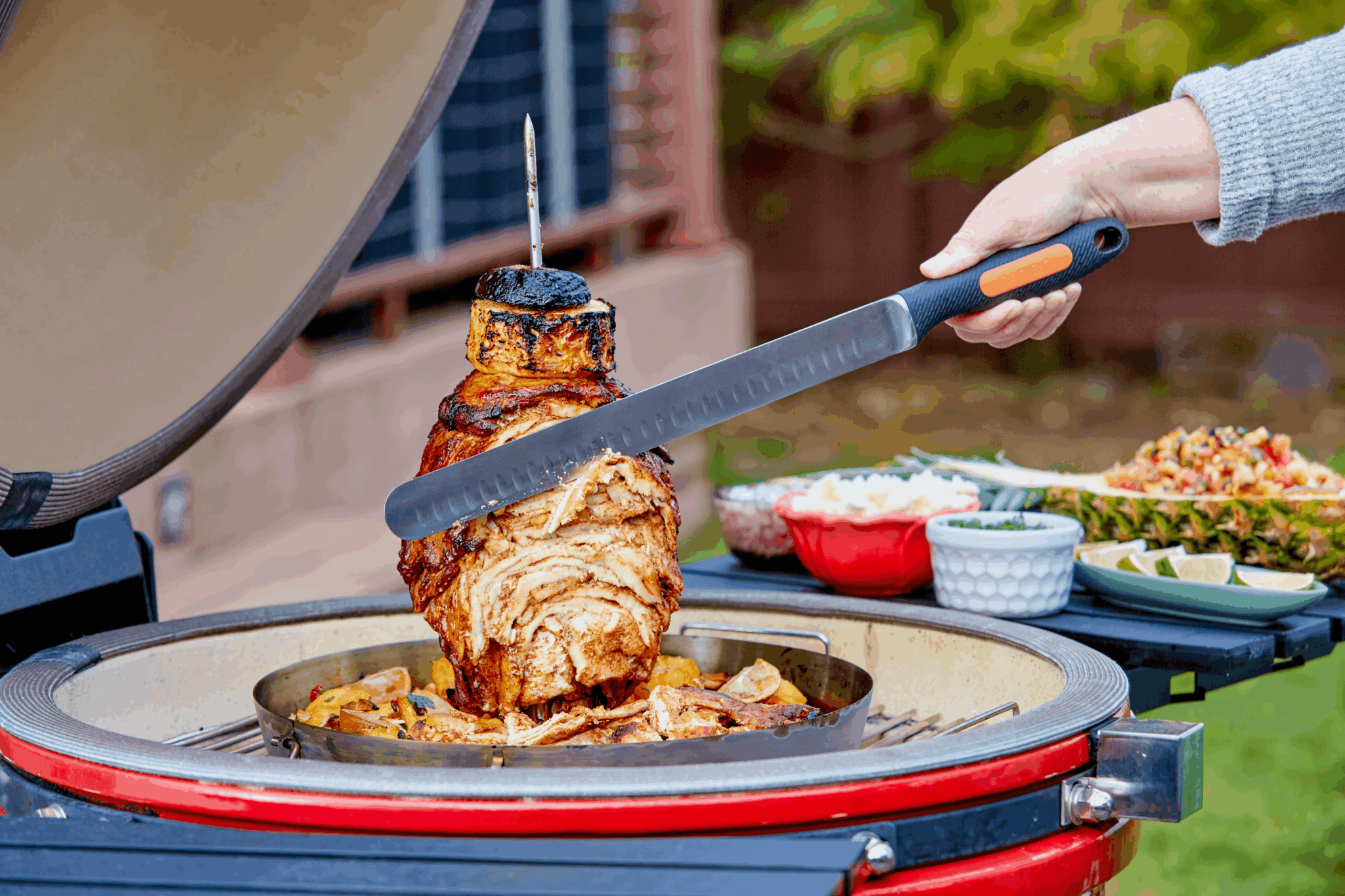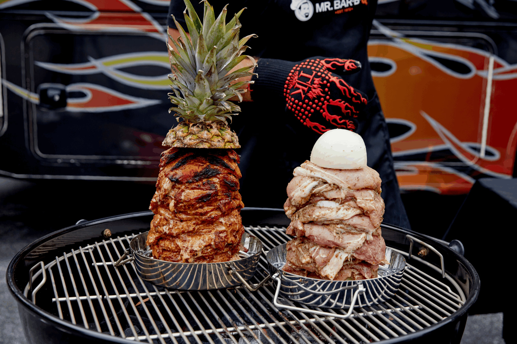 In 2017 my family and I went to Mexico City and enjoyed some of the local foods called tacos al pastor. We wanted to re-create this delicious dish at home but did not want to spend thousands of dollars on something. They call a Trompo to spin the meat so created a static version that goes on your grill smoker oven to create this tasty street food.