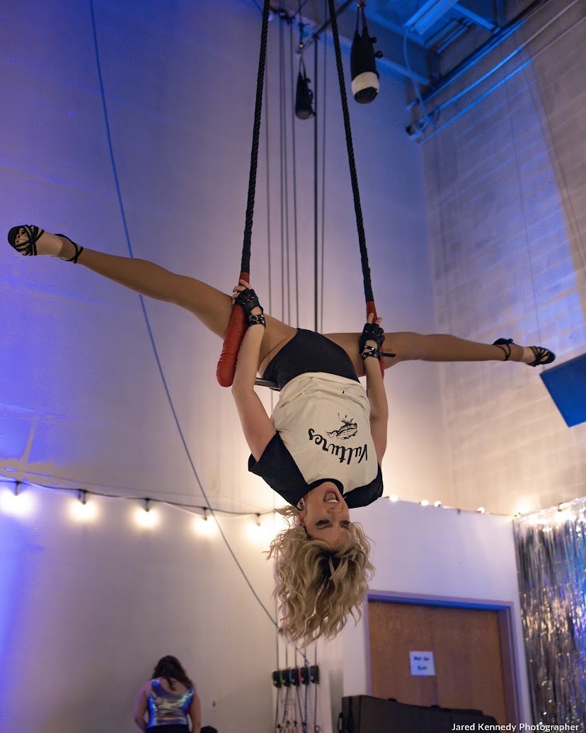 I am a multi-hyphenate artist: I am an actor, musician, aerialist, aerial instructor, and also manage Denver Circus Collective. I have been in the theatre industry for as long as I can remember, and studied it in school. I then moved to New York City to pursue acting. Over the course of my acting career, I was cast in a production of A Christmas Carol at Actors Theatre of Louisville in Kentucky. There, the woman playing Christmas Past was an aerialist, and descended from the top of the theatre on the silks. She spent the entire time on stage in the air, and I was mesmerized.