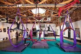 We have the best facilities in the entire region: 34 foot ceilings, a variety of both ground and aerial classes, partner acro yoga, wall dancing, ballet, handstands, and now we’re about to offer pole dancing classes! Peter and I together have co-created an instructor base that rivals any major city (which I can confidently say as a 10+ year New Yorker), and we pride ourselves in creating an open, welcoming community. We work with anyone, regardless of financial struggle or background, and believe in the power of circus arts for growth: physical, mental, emotional, and spiritual.