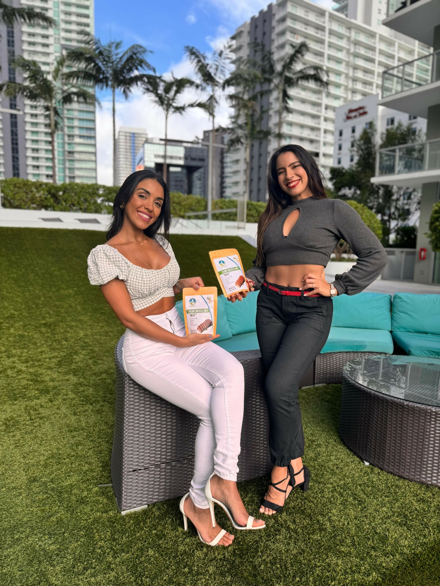 Nat and I (Veronica) met on Instagram. We were both vegan and had started following each other because of our shared interest in healthy eating and working out. We first met in person at the opening of Geisha 69, a vegan sushi restaurant in Brickell—though it soon went out of business. We stayed in touch and continued getting to know each other. After I underwent ankle reconstruction surgery, Nat invited me to dinner with her then-husband once I could walk again. We had a great night and decided to head back to her place so I could ice my ankle for a bit. As we walked through her front door, she popped the question—and I remember it as if it was yesterday. She said, “Have you ever thought of designing a product?” (She knew I was an interior designer, and I knew she was a plant based nutritionist) I said, “Yes! Seitan!” She was shocked. “No way! Me too!” That night, Nourished Life Foods was born! There hasn’t been a week since that we haven’t met to continue building our dream of sharing clean protein with people!