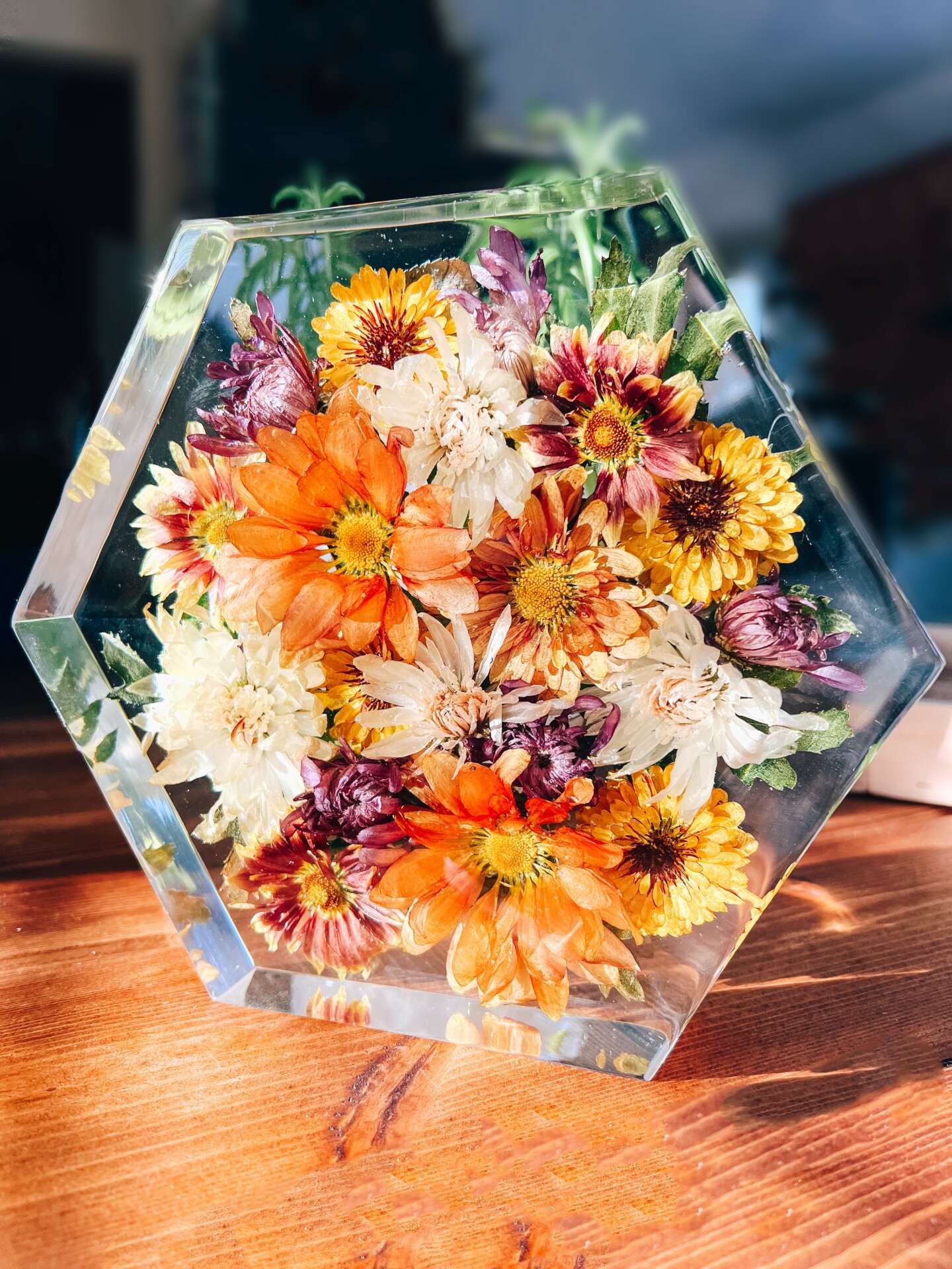 I have always loved trying new mediums as an artist. I decided to “go big or go home” trying epoxy resin for the first time in February of 2022. It was a trial period in my life, and having a creative outlet has always been very important to me. I started with creating pieces that incorporated my love for nature, rocks and colors. I was inspired to create geode-like wall pieces with crystals, trays and dishes with Lake Superior rocks and sand, and northern light pieces with live wood edges. The possibilities with resin are endless. About the same time I was creating these, my sister was planning her wedding. She asked if I could preserve her flowers in resin somehow. I said, “challenge accepted” and began researching. I practiced, and practiced and practiced some more. Her pieces came out beautifully and I received some attention on social media. I soon realized this could/would be something really special. I then offered to preserve other bridal bouquets and memorial pieces, and the next thing I knew my house was filled with flowers, containers, and drying silica. The local testimonials I received from the first few pieces I created was overwhelming. I was filled with joy, and decided I needed to go all in. “Now or never” I told myself. I have always used my artistic creativity as a joyful hobby, but it felt different this time. It felt like purpose, confidence and excitement. I began researching small businesses and the steps to take. I took each step one at a time. Creating my instagram, getting my website together with an official domain, and tax ID; it all became real very quickly. As my business was being started, I also challenged myself greater and gave myself a timeline to have my business fully ready by the Duluth Wedding Show. I went all in for the show to get myself launched in the community. It was surreal and the feedback from the show was powerful. I just reached one year of starting resin and I am proud of how far I have come.
