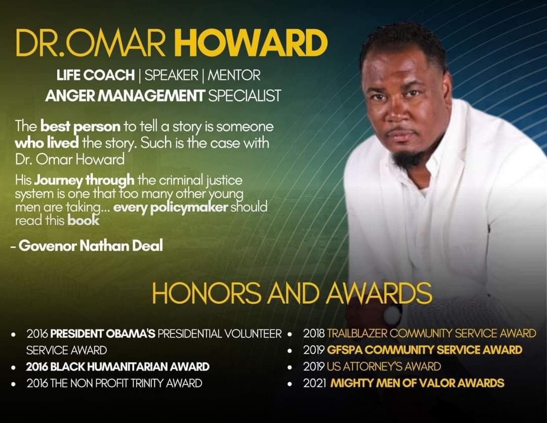 Dr. Howard is a locally and nationally sought -after motivational speaker, author and youth advocate that has addressed a wide array of audiences, including but not limited to various colleges, universities, federal and state prisons, and public schools across the U.S and places of worship family reunions, youth challenge academies, community organizations & agencies. As a returning citizen working currently in the Georgia dept of Corrections Dr. Howard has become the poster boy to not allowing your past to define your future. Dr. Howard after serving 15 years in confinement was invited to return to the same facility, he paroled out of to become the volunteer Chaplain which was un-heard of being he was still on parole. Once he successfully completed parole he was granted a pardon in 2018. In 2019 Omar Howard was hired full time by Dept of Correction. Upon his release Omar Howard has received numerous awards from Chaplain of the year, President Obama community service award etc. His most recent accomplishment was receiving an Honorary Doctrine in Humanatarism in 2021. Dr. Howard is also the founder of a 501c3 Non-profit FREEDOM IS A CHOICE, INC mentoring program and TRANSFORMING LIVES COACHING & CONSULTING LLC.