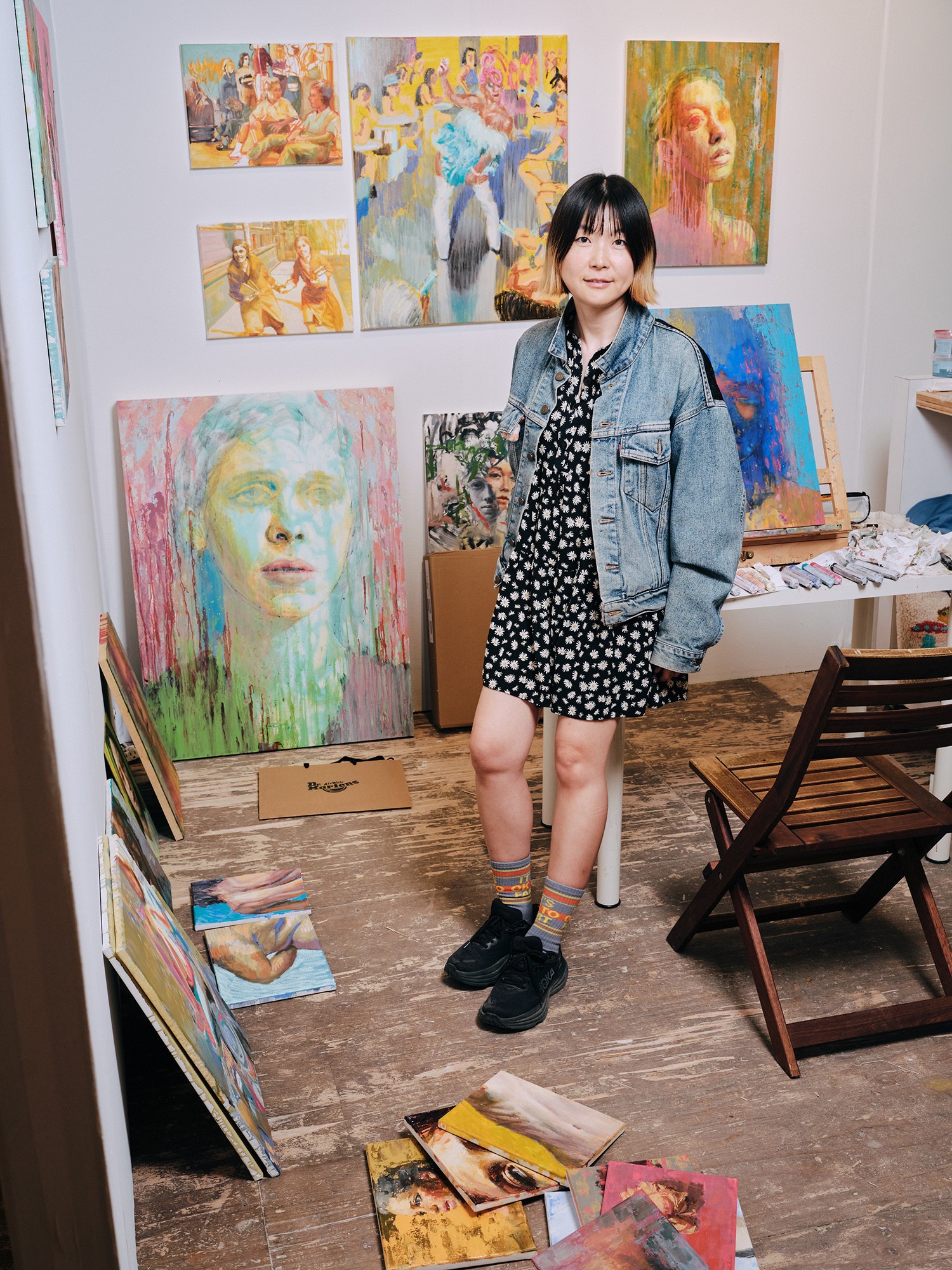 My background in drama and poetry shapes how I see the human figure: as a living story rather than a static image. My paintings often blur faces or eyes, reflecting the complexity of identity and the distance between people.