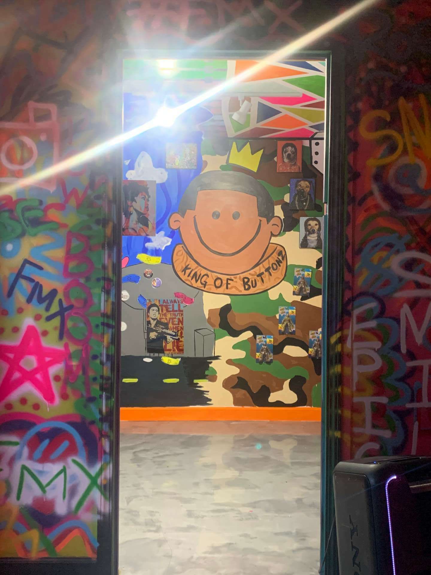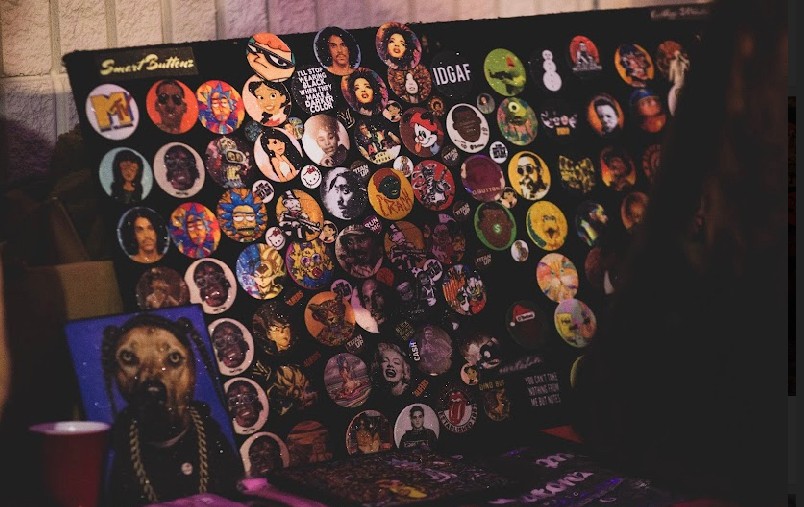 My entire brand started from a dream. I never wanted to the buttons life..the buttons life chose me. I started making some of the rawest buttons on earth..then I flooded the city with them. I use to sell them out of a duplex but I outgrew that place and decided to get me a store. I figured I’ll use the store as a cool event space since I had murals put up all over the walls. My entire building is covered in art. It is the worlds first Art gallery event space button retail store!