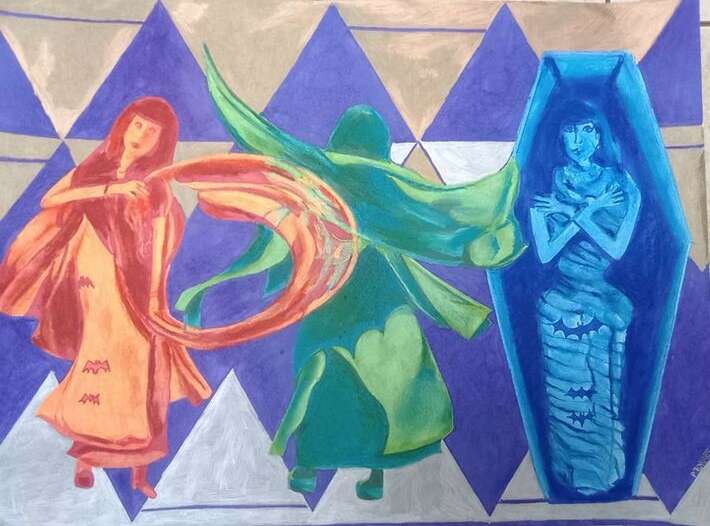 I would have to say one of my big risks was entering art into this annual event called Valentween. It’s a romantic goth exhibit that is arranged every February on the second floor of the St. Pete Art Lofts by Brandy Stark, a wire sculptor and teacher who has a passion for the paranormal (as well as her adorable pugs!) I consider this a risk because I live in New Port Richey and, in retrospect, making it to St. Petersburg was an exhausting chore. It’s too much driving, the parking situation is a nightmare (sort of like Red Bank, NJ) and I sometimes had to strategically fit my larger entries in the back of my car because they don’t fit in the trunk. Don’t get me wrong, this effort sometimes did pay off and I’m grateful that Brandy gave me the opportunity to show off my works even though none of them sold. One eyeball themed Valentween occurred in 2020 BC (before COVID) and was hosted and judged by Dr. Paul Bearer II who had some knowledge of art history. He picked my “Butterfly Blessings” for third place and that was one of my happier highlights. I felt honored. From then on, the shows got smaller thanks to the pandemic and eventually it got too expensive to hire a judge, so from 2022 onward guests who came to the Lofts were each given a black heart-shaped sticker to place on the wall next to whichever drawing, painting or sculpture they liked best. The more hearts you get, the more votes you get, and the better chance you as an artist have of earning first, second or third place. At first, I thought it was a good idea and that the decision would be fair. But it wasn’t, because it became a popularity contest. I remember the Valentween event Bobby and I went to last year was “Kiss of Death” (AKA vampires) and there was another female painter who submitted a simple and pretty nice vampire portrait that reminded me of Terror on Church Street. My husband and I arrived to the Lofts early and noticed a small crowd of parents and children arrived to stick 20-something black hearts on the wall next to that picture. Bobby made a guess that this woman was a kindergarten teacher and the children were from the school she worked in. What bothered and discouraged me was that, to make a long story short, this aforementioned artist won the 1st Place blue ribbon and the $100 BEFORE the contest started. The whole thing felt like it was fixed, and it made me realize that how the winners at Valentween were determined had nothing to do with talent and hard work and everything to do with how many people you know and how many of your friends show up. From that day on, I promised myself not to drive down to St. Pete ever again. It wasn’t worth the disappointment. One of the reasons I began participating in online art contests is it’s far easier and cheaper than make a long, sluggish commute to a public gallery. Plus, since I got picked as a finalist more than once in 2023, it has helped me quickly grow a resume, expose my art to wider audiences, and build a good reputation.