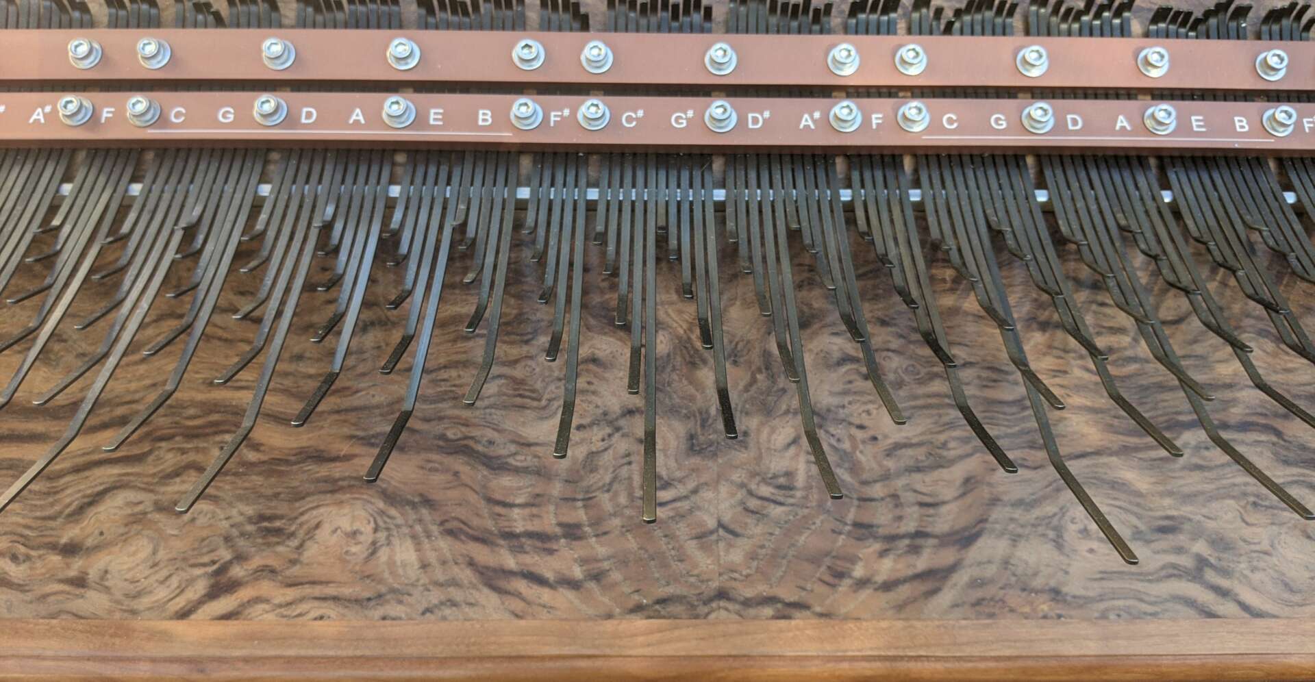 It’s always been my (our) goal to share the unique beauty of the Array mbira and it’s unique system of note arrangement. It’s not just a beautiful sounding instrument or an amazing work of art. It’s the system of note arrangement that really makes these instruments so unique and different. The Array System of note arrangement makes understanding and playing music much more approachable and easy to understand than most other instruments. That is our claim to fame! There are many, many types of similar instruments but there is nothing remotely close to the Array mbira. There have been a few copies but they have not been very successful. We have refined our production for over 30 years and there have been many improvements and innovations.