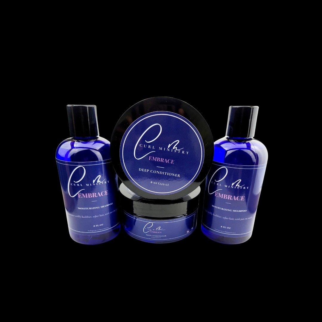 As my daughter got older, and her hair got longer, my frustrations with the product market grew. I tried almost every product in the multicultural aisle at Target only to discover I couldn’t find one product line that worked well on both of our curls. So, I started researching and experimenting with oils, fruits, roots, and powders in hopes of creating a cleanser and conditioner that would allow our curls to flourish. It took many attempts to get the ingredients right. When I did, I shared the resulting products (Embrace Moisturizing Shampoo and Embrace Deep Conditioner) with a friend, who asked for several refills, and strongly suggested I start a business selling my products.