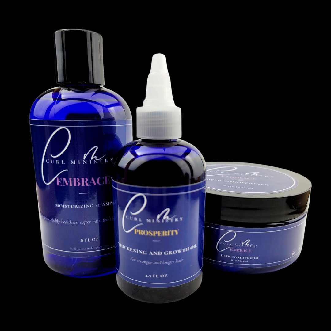 Curl Ministry offers four products perfect for tight curls/coils; Prosperity Thickening and Growth Oil, Prosperity Body Glaze, Embrace Moisturizing Shampoo, and Embrace Deep Conditioner. Curl Ministry’s products are free of alcohols, detergents, and additives. These products get their effectiveness from familiar organic ingredients known to add vitamins, nutrients, and exceptional hydration to your hair. These ingredients also assist with detangling and conditioning dry brittle hair for a shorter, easier wash day.