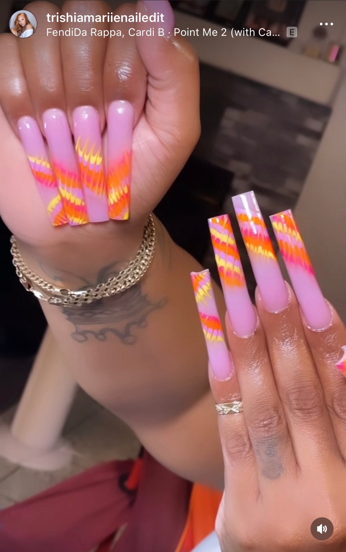 I was doing my friend Nadine nails and her nails always take awhile because we are always talking and never really know what design we are gonna do plus she likes her nails super long. We finally came up with a design and once i finished it was around 11 o clock at night and i took my content video and i posted it to my instagram and about 5 mins later i seen a comment from iamcardib and i was skeptical if it was really her so i asked my friends and they were like “YES THATS REALLY HER” and i just remember we started screaming and yelling that Cardi b commented on my nails it was a exciting day for me and I’ll always remember it like it was yesterday.