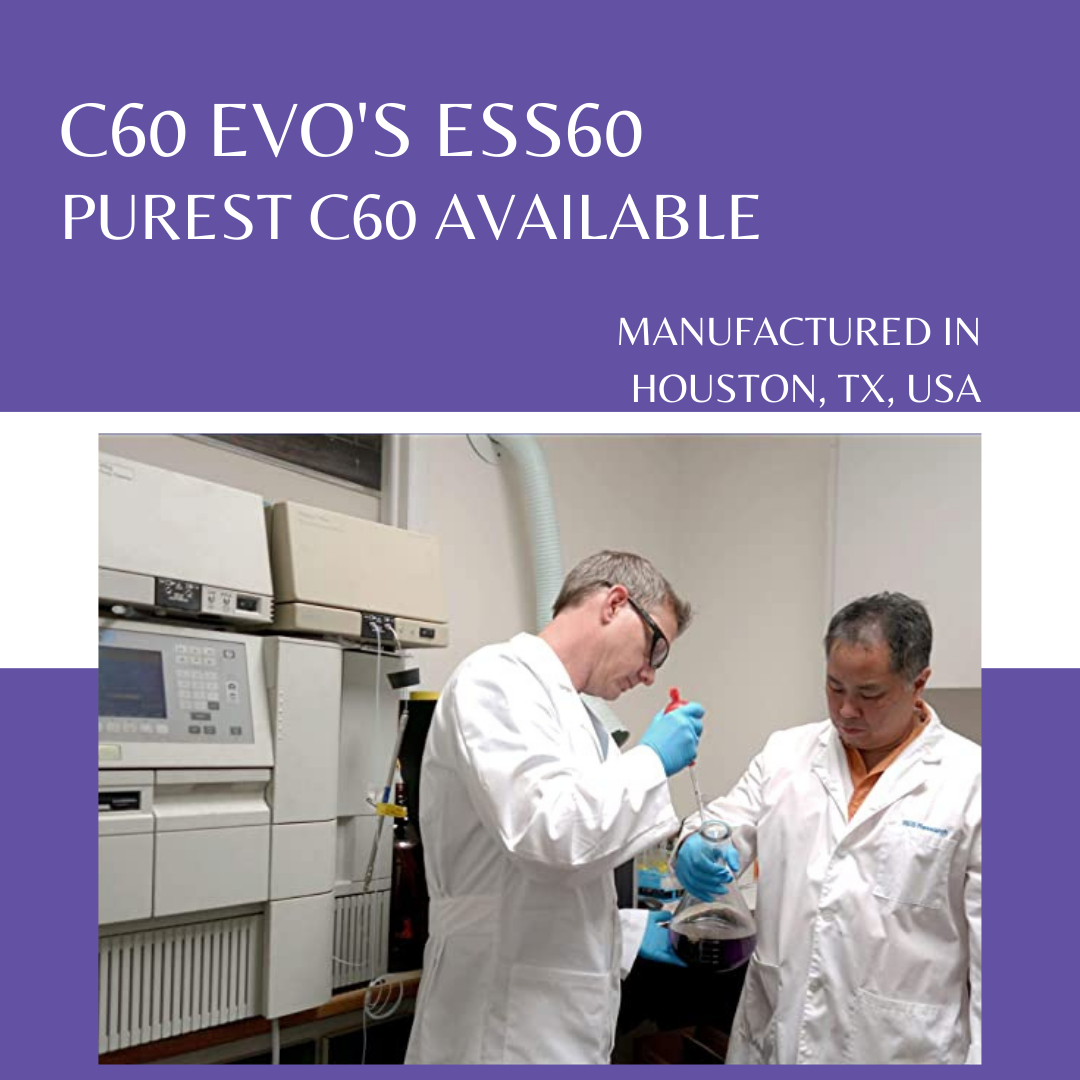 C60 Evo delivers the purest carbon 60 fullerenes in the world, ESS60 (Elemental Safe Spheres with 60 carbon atoms). Our ESS60 is made specifically for people and pets. Our lab has been delivering C60 for 34 years with great integrity and now we sell directly to the public because people need these potent antioxidant, antiviral, anti-inflammatory remedies in a form that is easy to consume. Just take a spoonful (teaspoon or tablespoon = depending on how much you need to detox your body and brain) before noon to enjoy more energy, mental focus, flexibility and endurance all day long. You’ll even sleep better at night when you take C60 EVO organic oils! Our ESS60 has been proven to be 125 times stronger than vitamin C as an antioxidant in a peer reviewed study. This isn’t just any organic olive oil, this is pure cold pressed extra-virgin olive oil from a farm in Tunisia. Carbon 60 can be found in outer space and at the edge of volcanoes apparently, but there’s not enough to go around to serve the public. That’s why we’ve been manufacturing c60 and ESS60 in our Houston, Texas lab for 34 years. But be careful when purchasing C60 online because many of the other C60 online companies are selling industrial grade c60 from China, which is not known to be safe for people and pets. There’s a big difference between industrial c60 which we sold for decades for ink, batteries, tires and photocells – and pure ESS60. We would never sell industrial c60 to be consumed by people and pets. We only sell ESS60 in our C60 Evo products and you will definitely notice the quality!